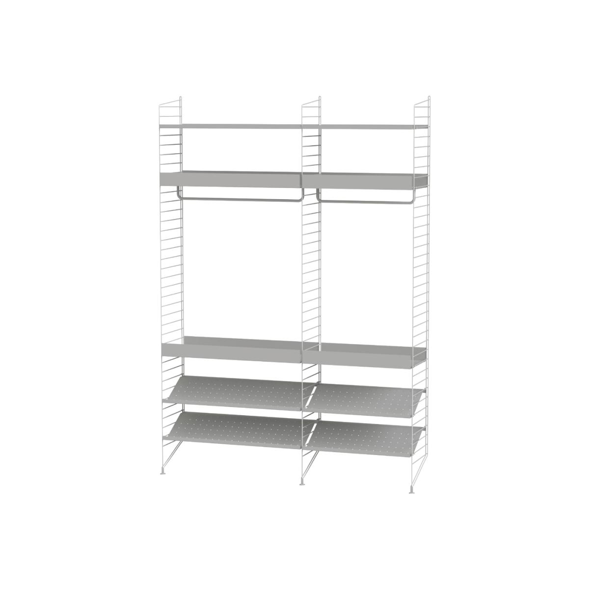 Originally designed in 1949 by architects Nisse and Kajsa Strinning for Bonnier's public library, the String Shelving System by String Furniture offers limitless possibilities for your home, including the configurable Bedroom C system. A modular system with multiple combinations fitting seamlessly together to fit your space, String Shelving is still crafted in Sweden to this day, using a distinctive runged powder-coated steel wall panel and slotting shelves. The Bedroom C unit also offers the option to include a floor-mounted combination with many features such as rods and shoe shelves. A popular shelving system in mid-century Sweden, the String System is now renowned all over the world for its Scandinavian style, functionality and versatility. Winner of the German Design Award 2016, gold medal winner at the Milan Triennale 1954, and winner of the Good Design Long Life Award 2020, the String System has proved itself to truly stand the test of time.