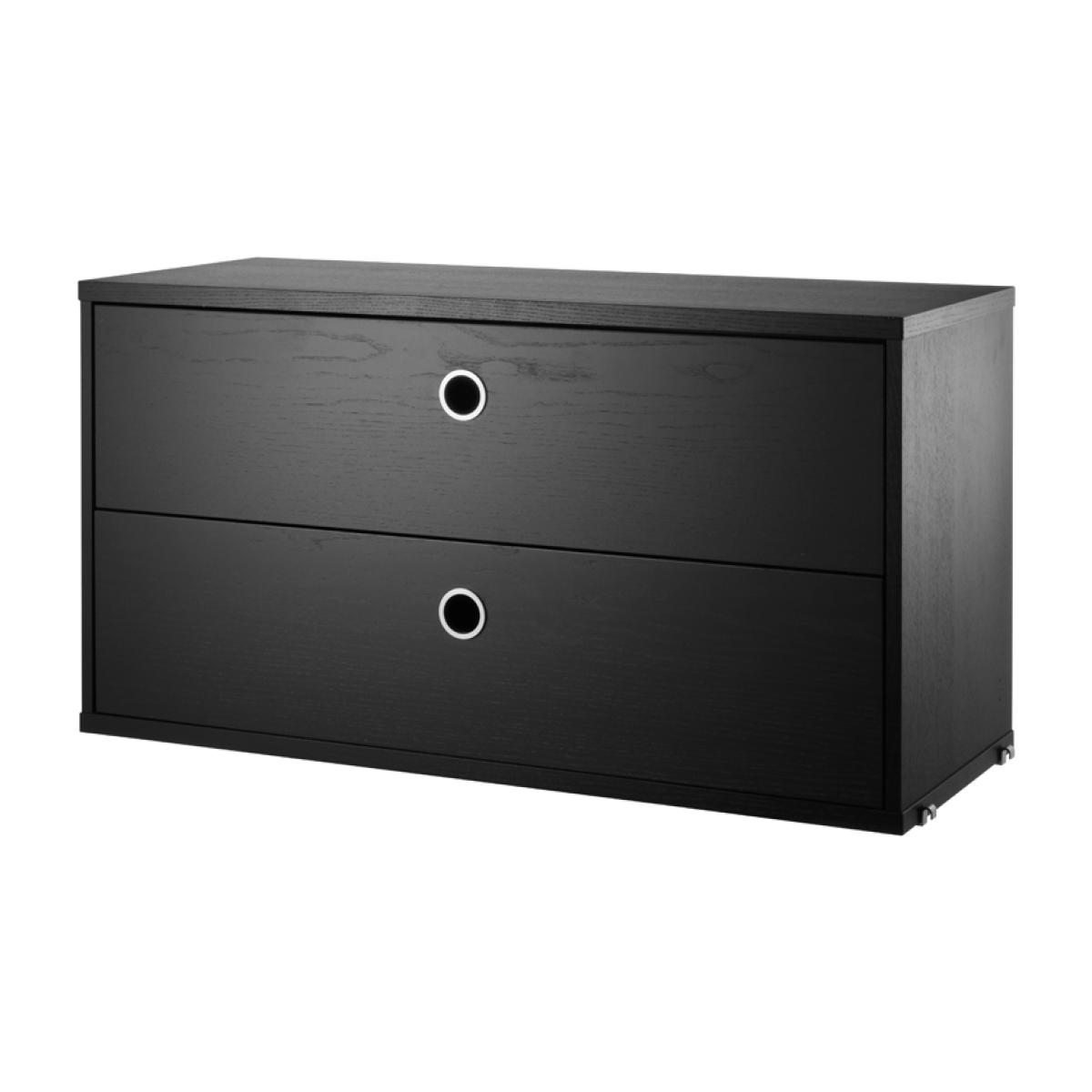 String cabinet with drawers is part of the functional and classic String shelf and is part of the String System series that includes components with classic wire panels and offers almost unlimited combinations. It has two drawers, fitted with the same round handles as the cabinet doors. The String drawer unit fits all String System wire and plex headboards with a depth of 30 cm.