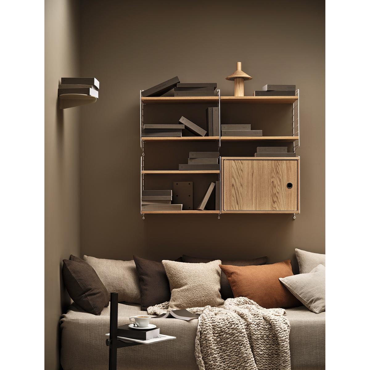 String shelves are part of the String System series which includes components with classic wire panels and offers almost unlimited combinations.