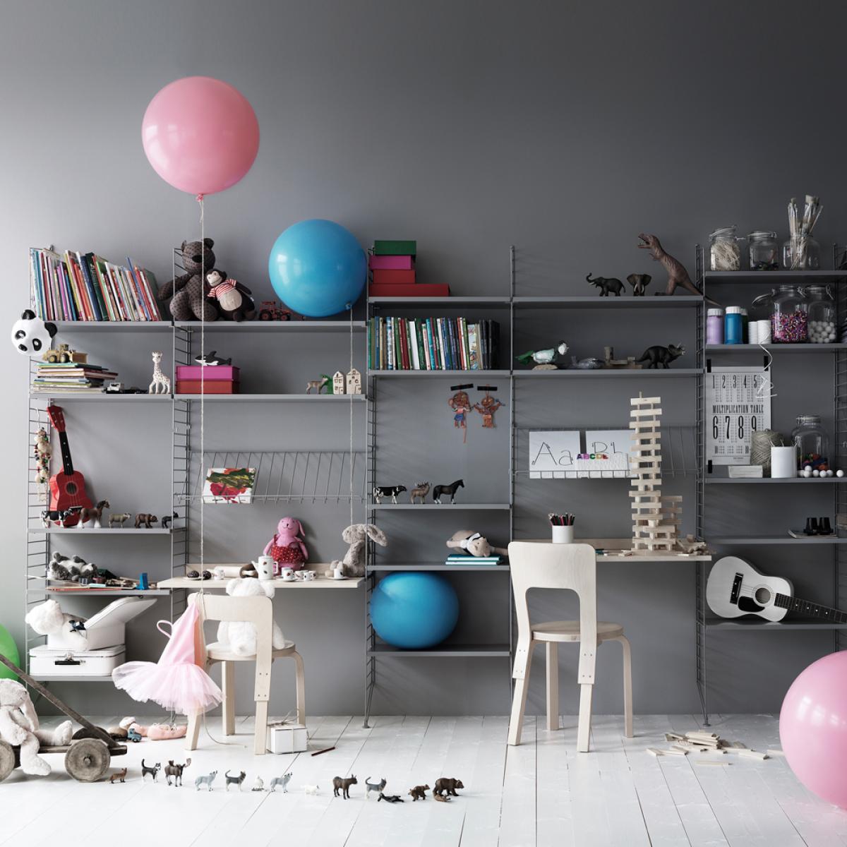 String worktop from String can be used as a workplace or relief area in the kitchen or in the hallway and can withstand a maximum load of 15 kg. The worktop fits the wire headboards with a depth of 30 cm and is easy to adjust to the desired height.