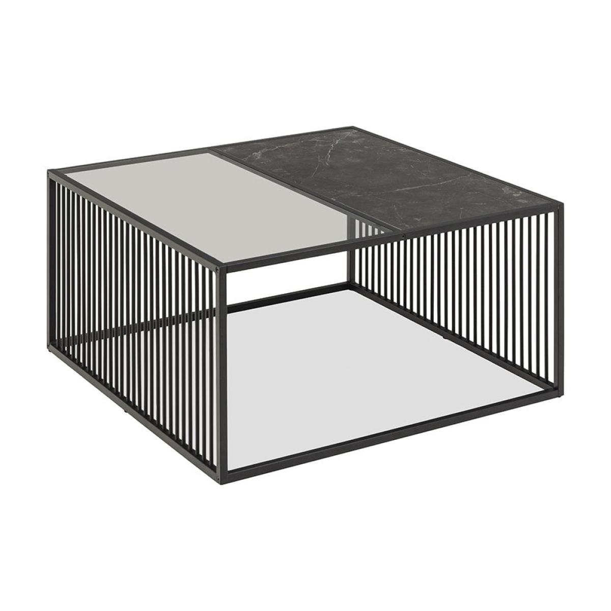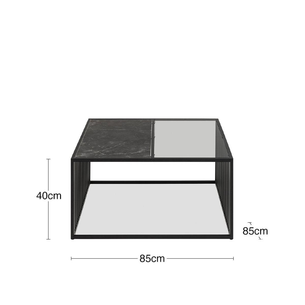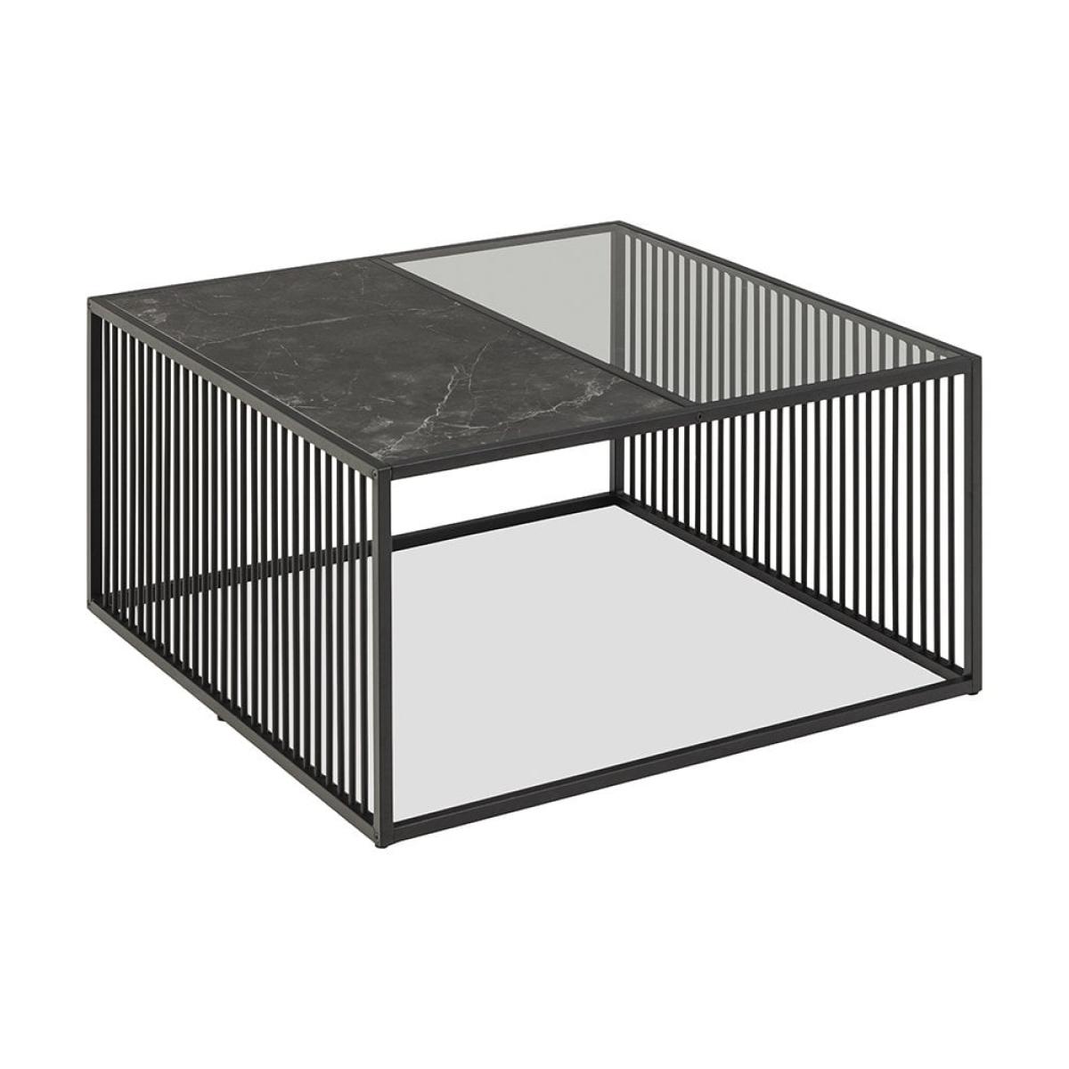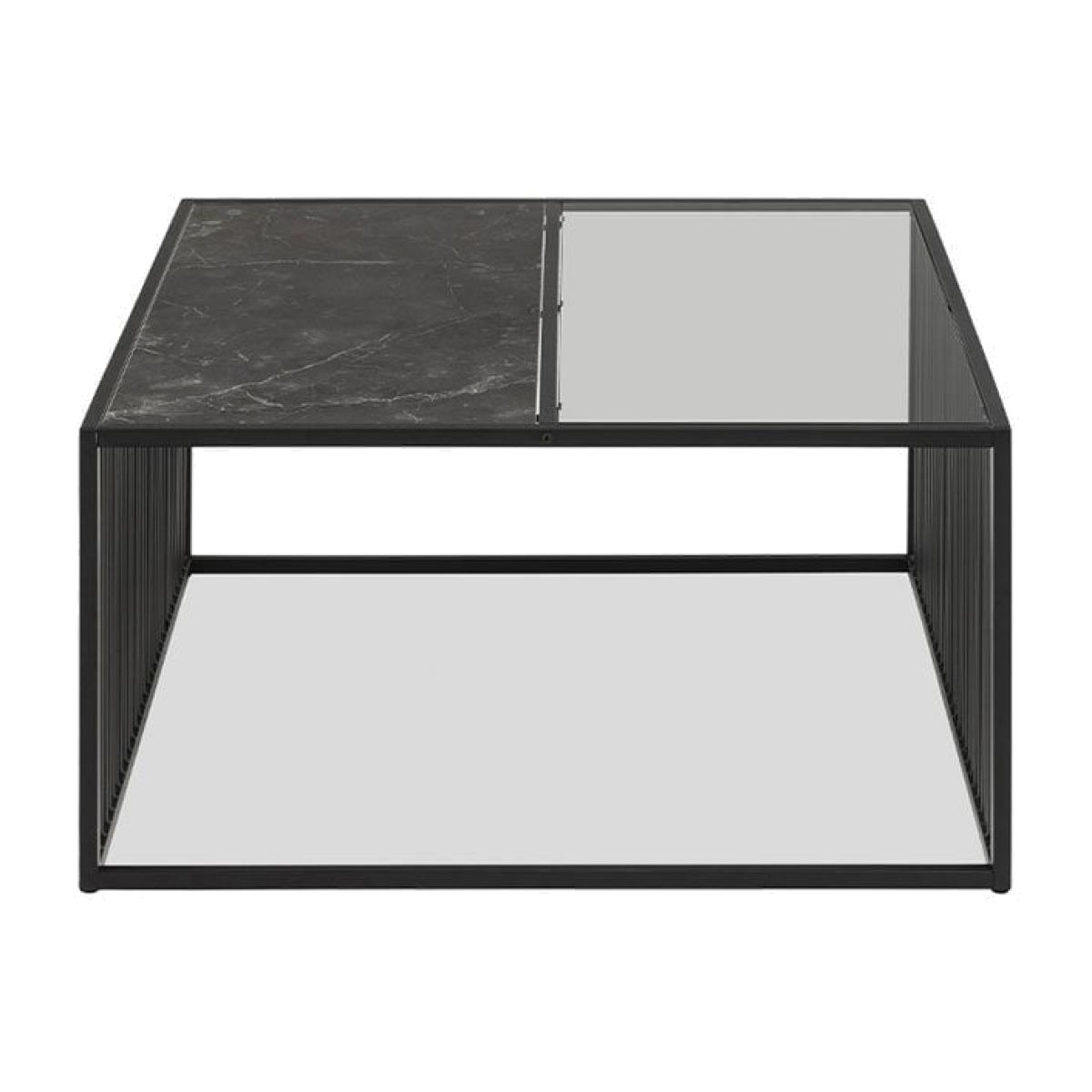 I’m a fan of this square coffee table for its clean lines and mix of materials: the half-glass, half-marble top set in a slim black frame keeps things feeling light while still making a statement. It sits comfortably in contemporary, industrial or minimalist schemes and works equally well in a Scandi-inspired space when paired with pale textiles and simple ceramics. Styling-wise, treat the two surfaces as separate zones - a low vase or candle cluster on one side, a neat stack of art books on the other. The open under-shelf is perfect for a woven basket or a trailing plant, helping to balance out the top and keeping your living area clutter-free.