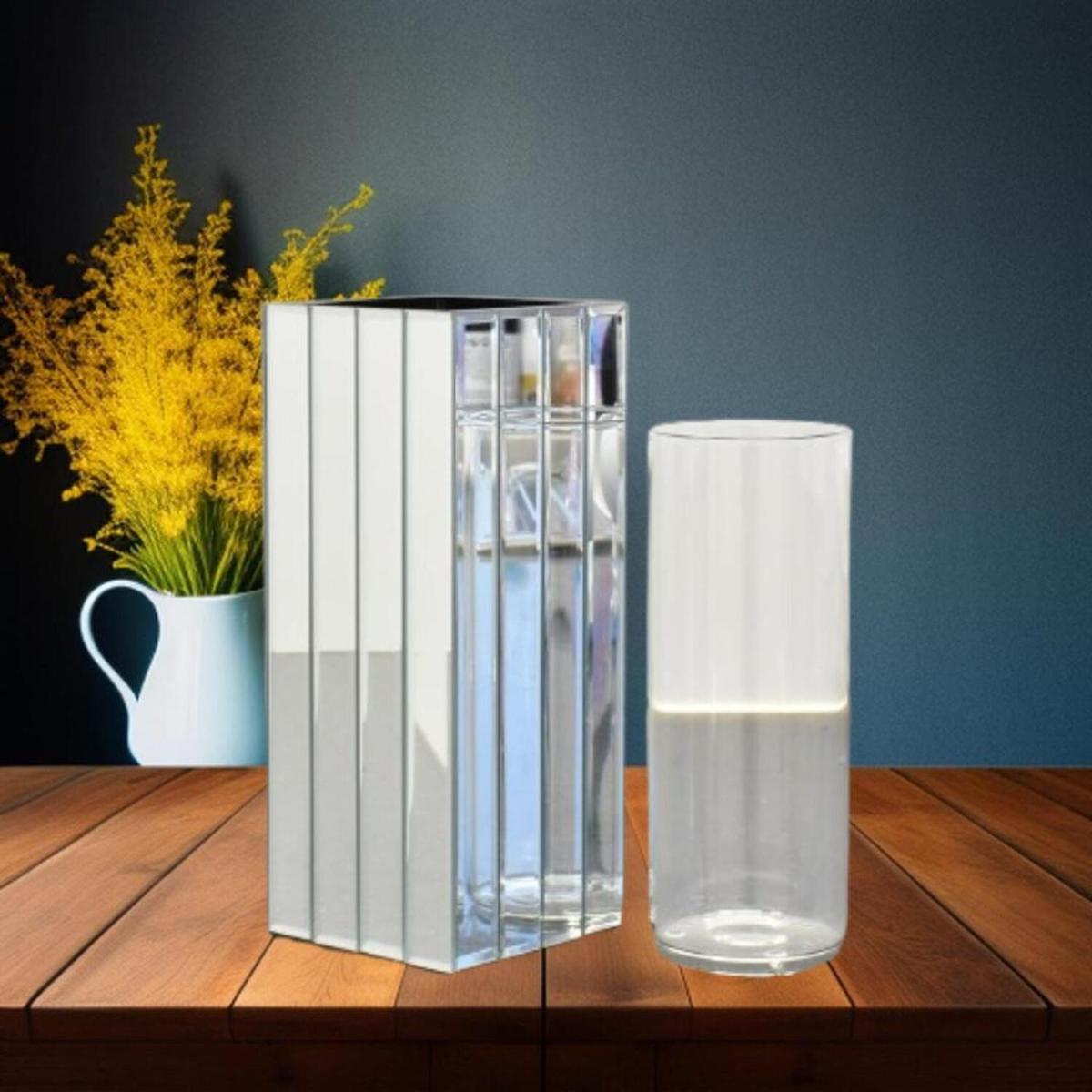 Strip Mirrored Vase Small Bouquets Fresh Roses Flowers Square Glass - Silver