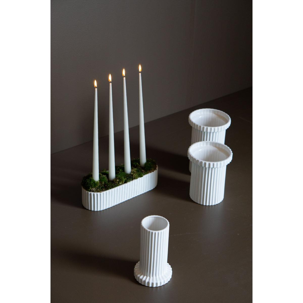 Stripe candlestick from DBKD is made of ceramic and designed in an oval shape decorated with tight vertical stripes that create an eye-catching structure. The candlestick has four candle holders and makes s perfect advent candlestick that you can use all year round Display the Stripe candlestick in the middle of the table or in a group with other candlesticks, vases or pots.