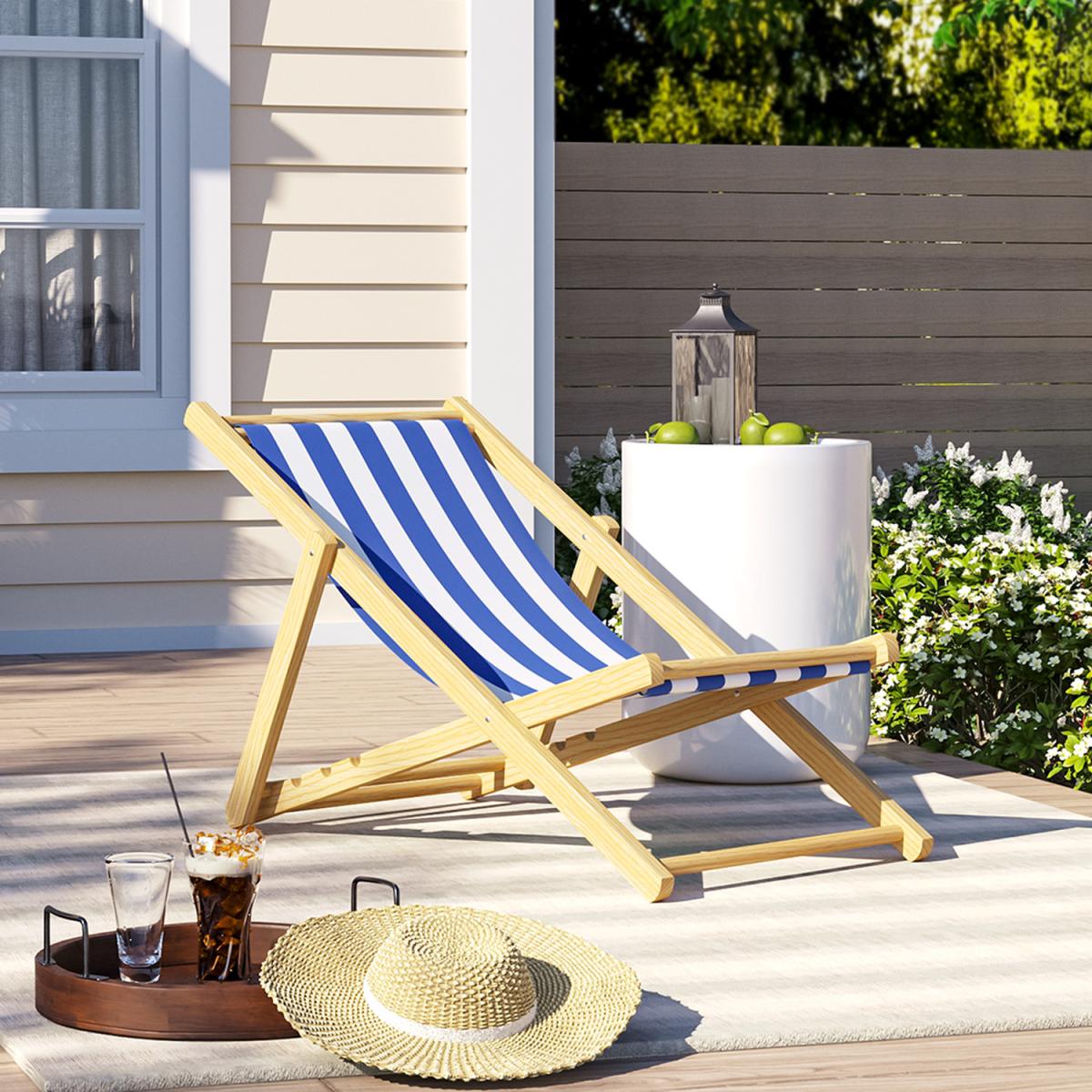 Our stripe folding beach chair is made of high-quality canvas material, which has a high tear resistance and abrasion resistance provides long-lasting strength. The chair with a high back so you can rest your back comfortably and the maximum supporting weight can reach 330 lbs. The canvas is removable so when it's time for a machine wash, just remove the canvas from the wooden-slot attachment. Adjustable to your choice of 3 reclining positions for maximum comfort, which could add to your summer-time tanning joy and for relaxing in the perfect outdoor deck chair.