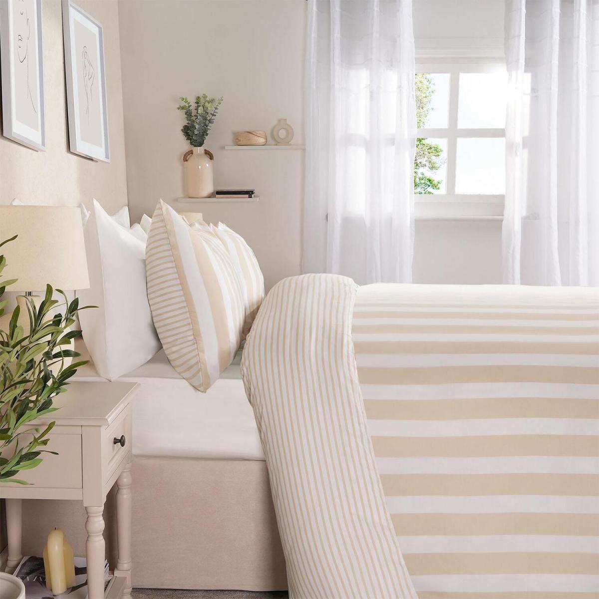The Stripe Line Reversible duvet cover is a versatile piece that adds subtle texture and pattern without overwhelming a space. I love how its neutral tones make it easy to incorporate into both modern and traditional interiors, creating a calming, cohesive look. It works well in spaces where you want to keep things understated and fresh, especially when paired with soft, matching accessories or layered with cushions in complementary colours. Practical styling tips include playing with the reversible feature - flipping the duvet for a different look or combining it with textured throws and patterned cushions for added visual interest. It’s a reliable, stylish choice for creating a timeless bedroom setting.