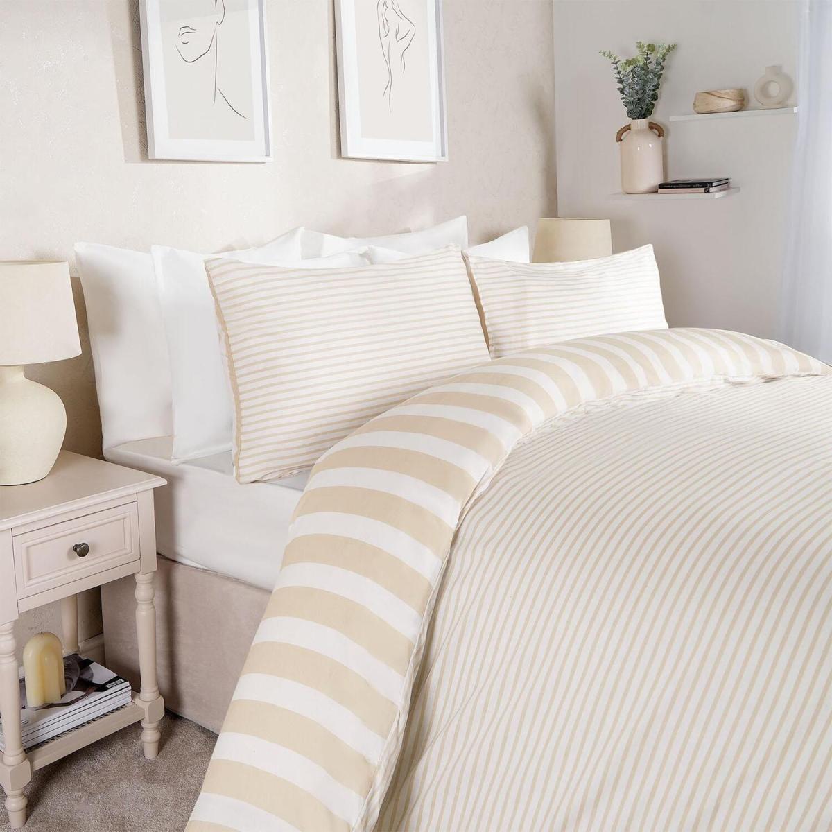 Stripe Line Reversible Duvet Cover with Pillowcase Bedding Quilt Set - Natural / King