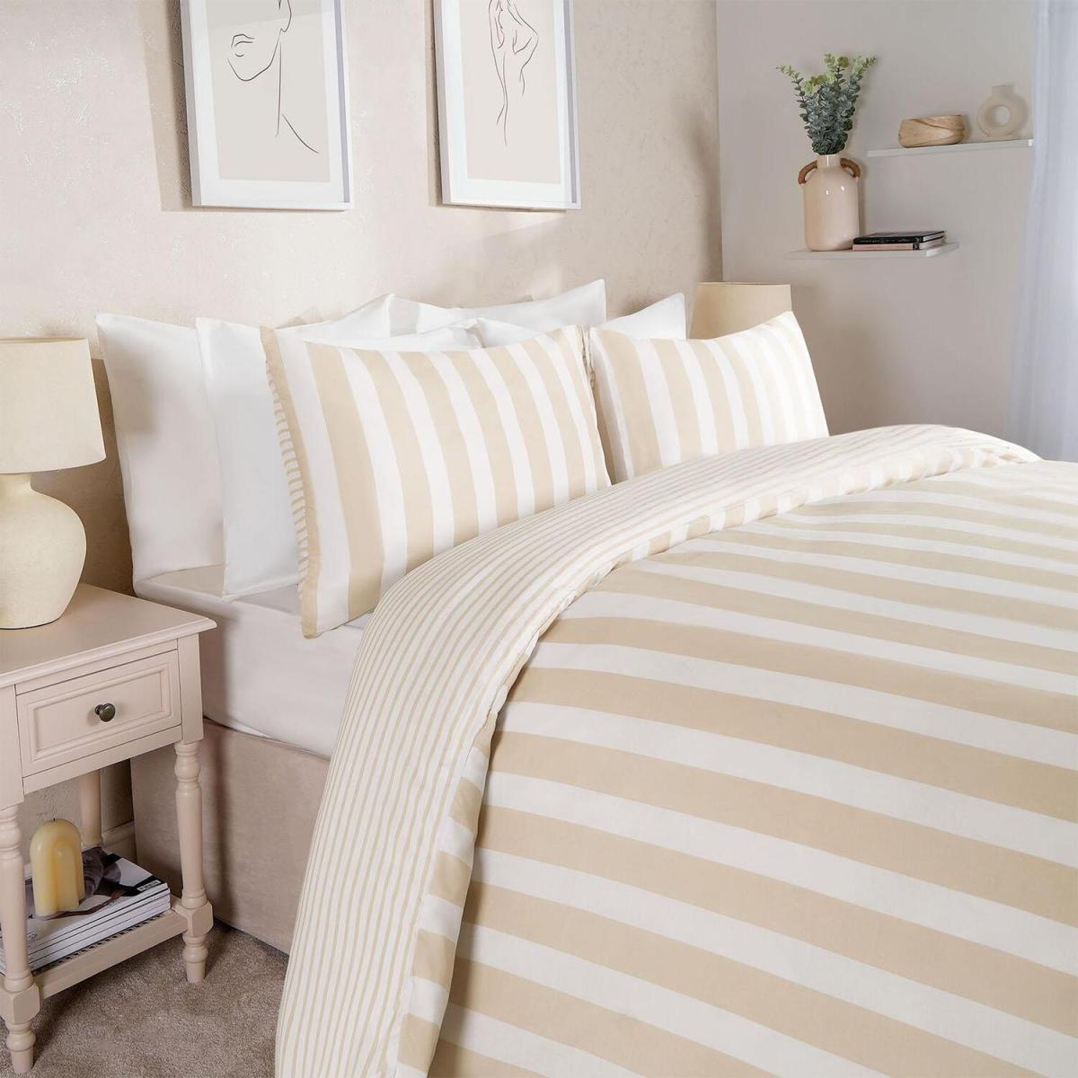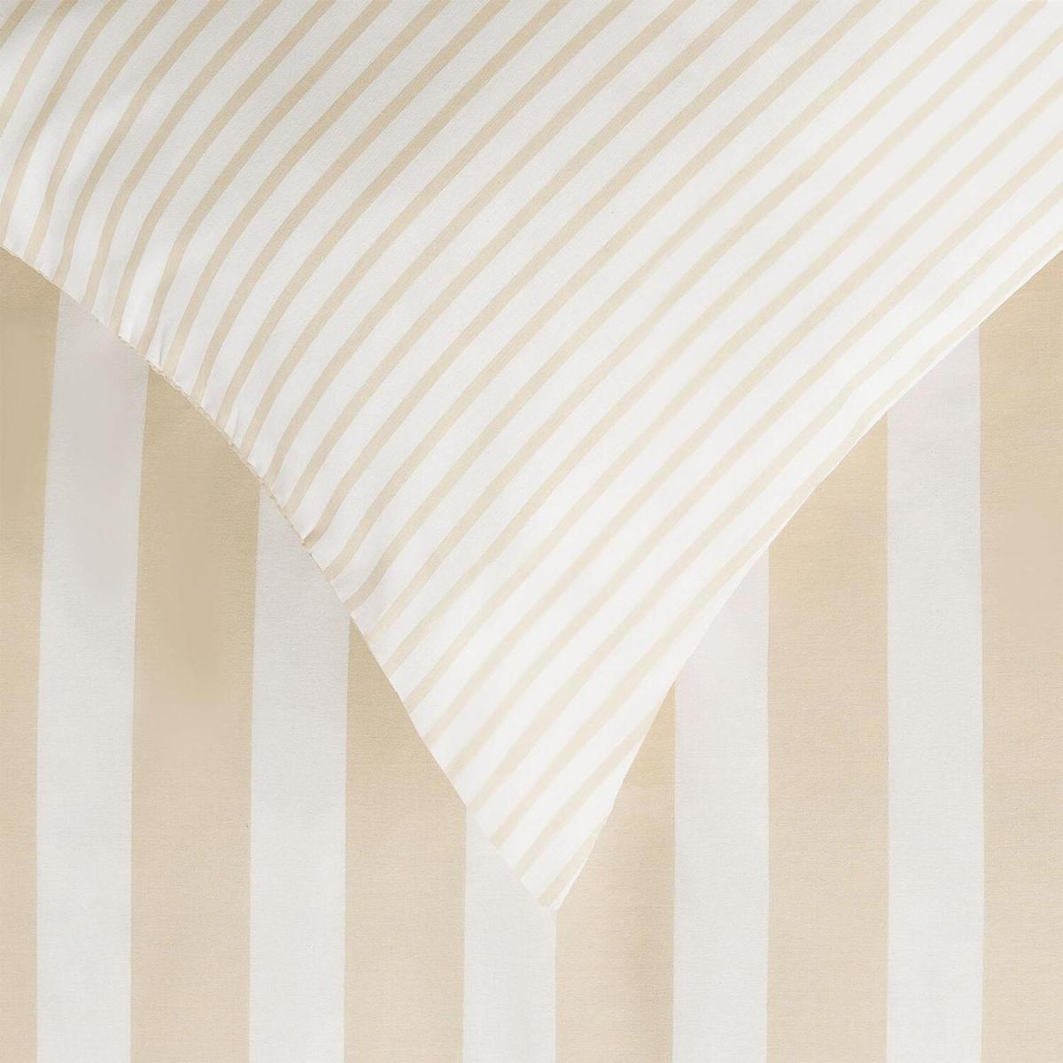 Stripe Line Reversible Duvet Cover with Pillowcase Bedding Quilt Set - Natural / Single