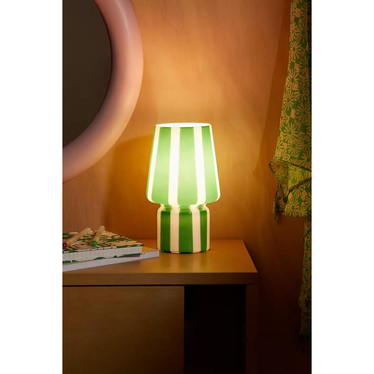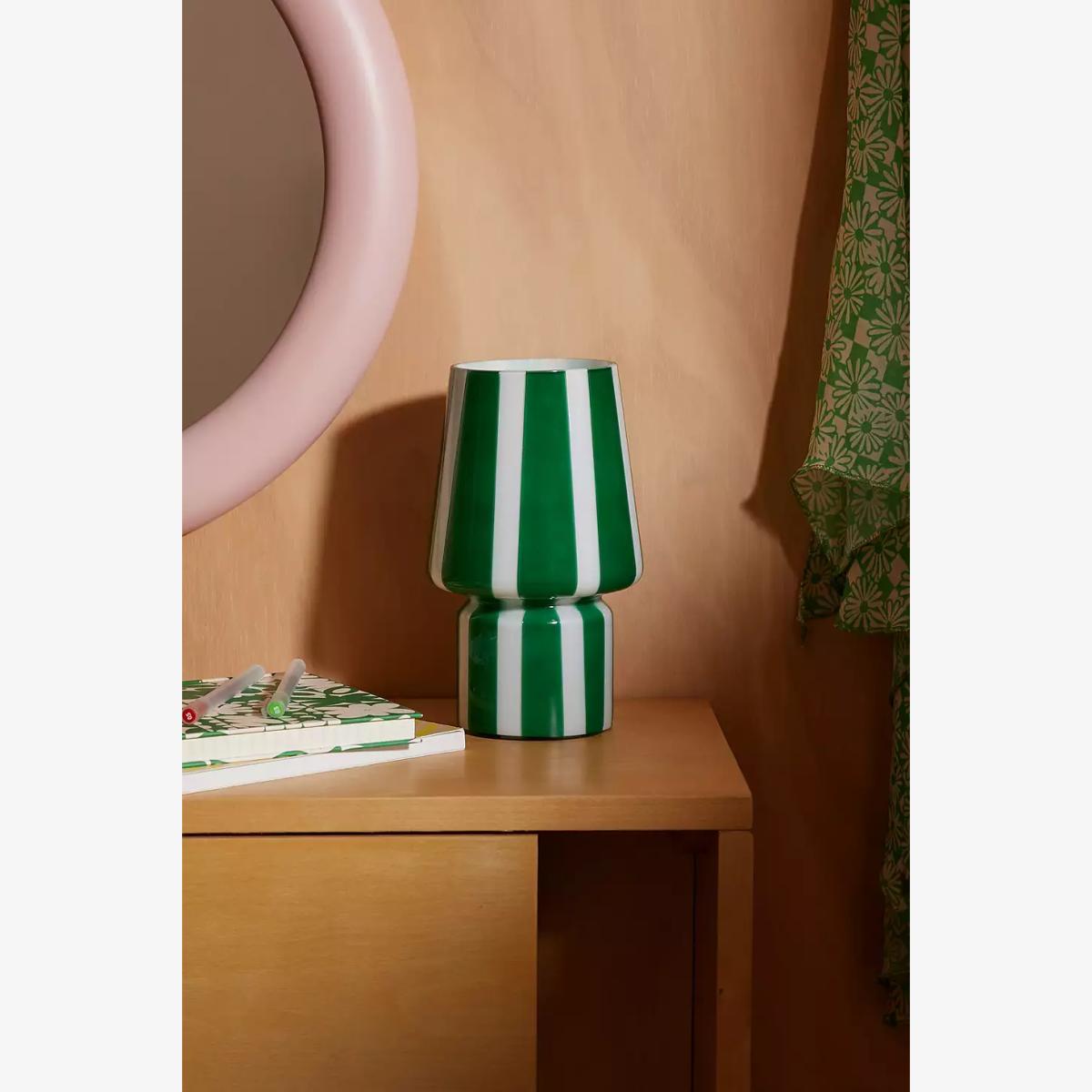Small table lamp in a glass construction, complete with curved edges, an open-top silhouette and an overall stripe design. Frosty glass lamp emits a warm glow when turned on, perfect for adding to your bedside table or bookshelf. Simply plug in to power on. **Content + Care** \- Glass \- Wipe clean \- Requires one E27 25W bulb **Size** \- Dimensions: W: 9.6 cm x H: 22 cm