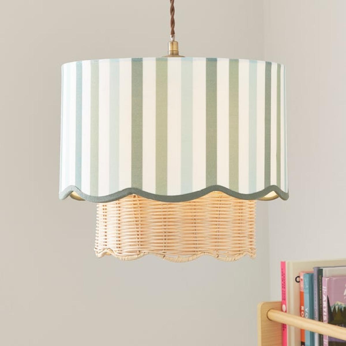 * Stylish Striped Design * Soft, Scallop Detailing * Easy Fit - No Electrician Required * Available in Multiple Colourways Add a playful pop to your space with the Stripe Scallop Easy Fit Lamp Shade. With its eye-catching striped design and soft scallop detailing, it’s a quick and easy way to update any room — no tools, no electrician, just instant style.