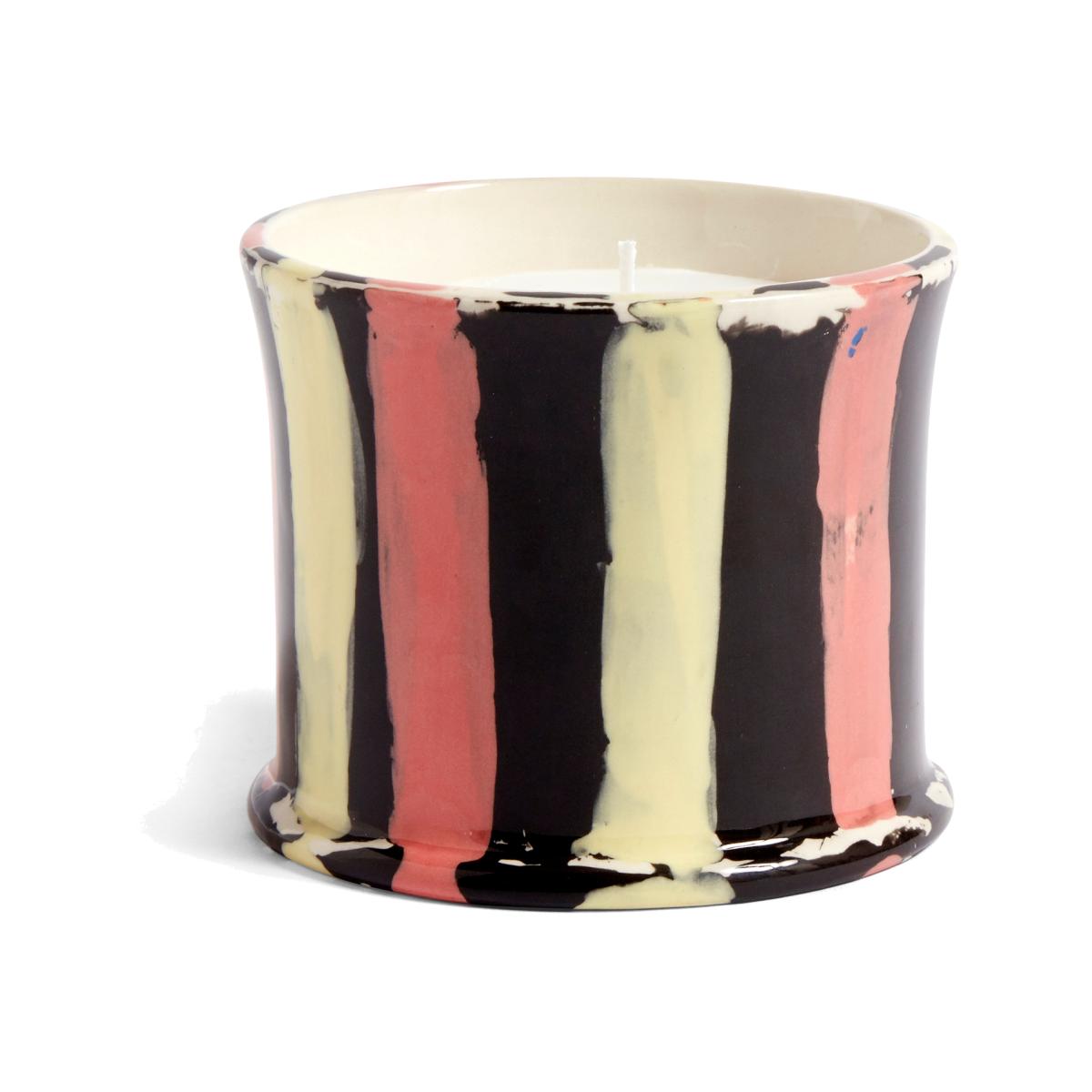 The Stripe scented candle from HAY is a beautiful hand-painted aromatic candle cast in numerous radiant colours. Place the candle on the bedside table or in the bathroom to optimize its full aromatic effect. Once the flame has burned down, you can use the unique container to store hairpins, cotton pads, or various other toiletries.