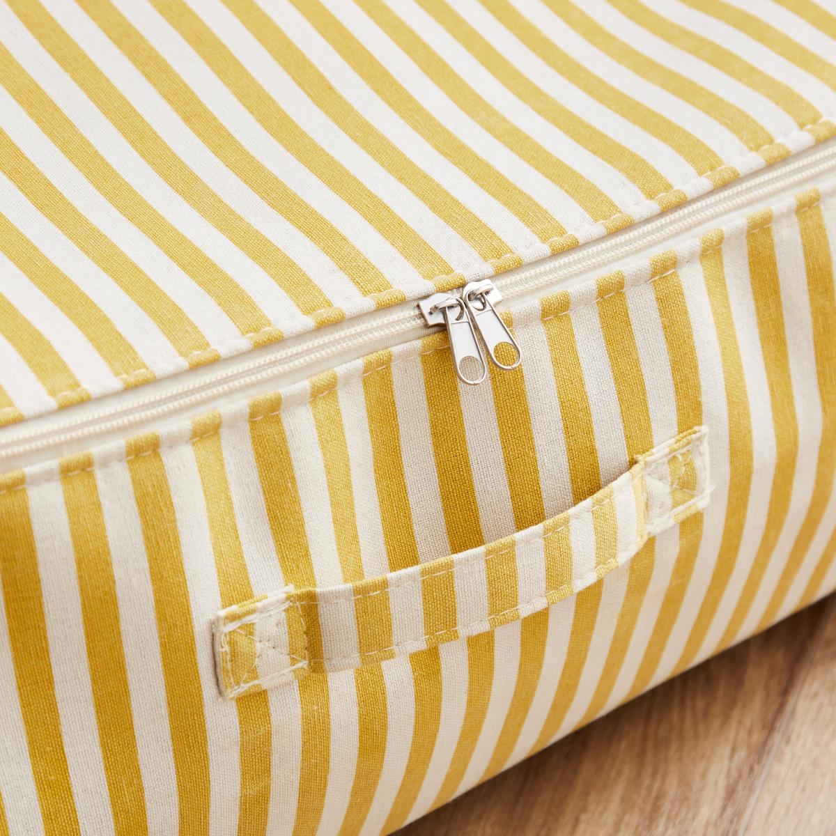 I love the stripe underbed bag in ochre for its versatility and practical appeal. Its warm, earthy tone adds a cosy touch to neutral or wooden interiors, making it perfect for both contemporary and rustic styles. The striped design injects a hint of visual interest without overwhelming the space, while its underbed placement helps maintain a clutter-free look. Tips for styling include using it for seasonal bedding or storing extras out of sight, ensuring it remains both functional and unobtrusive. It works particularly well in bedrooms with natural textures or colour palettes leaning towards warm neutrals, adding quiet organisation that’s easy to access.