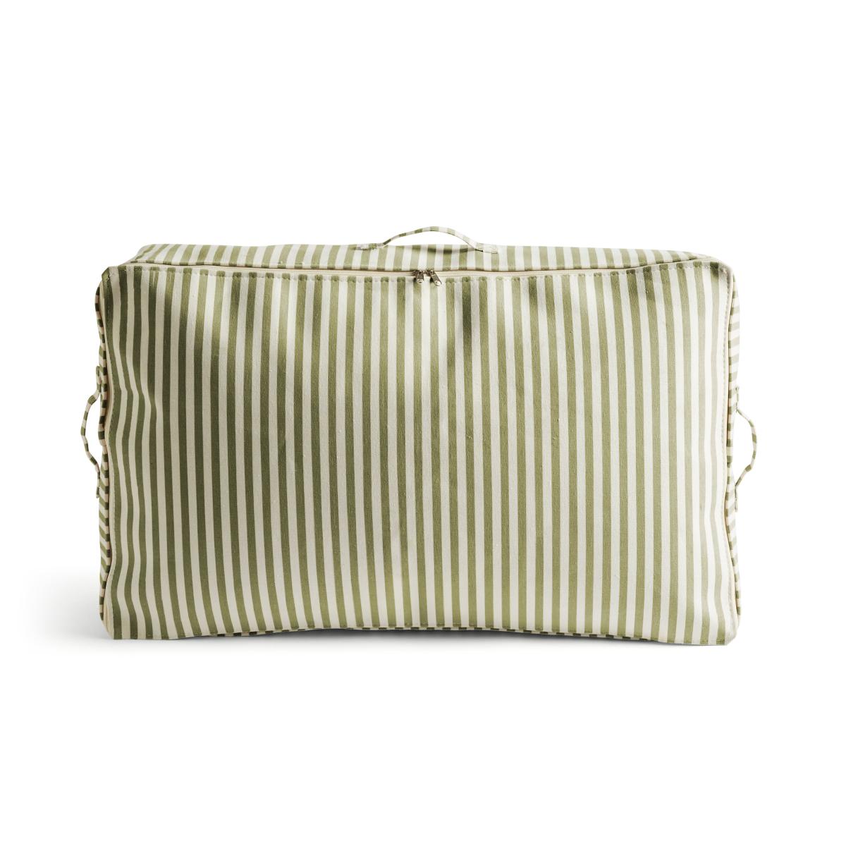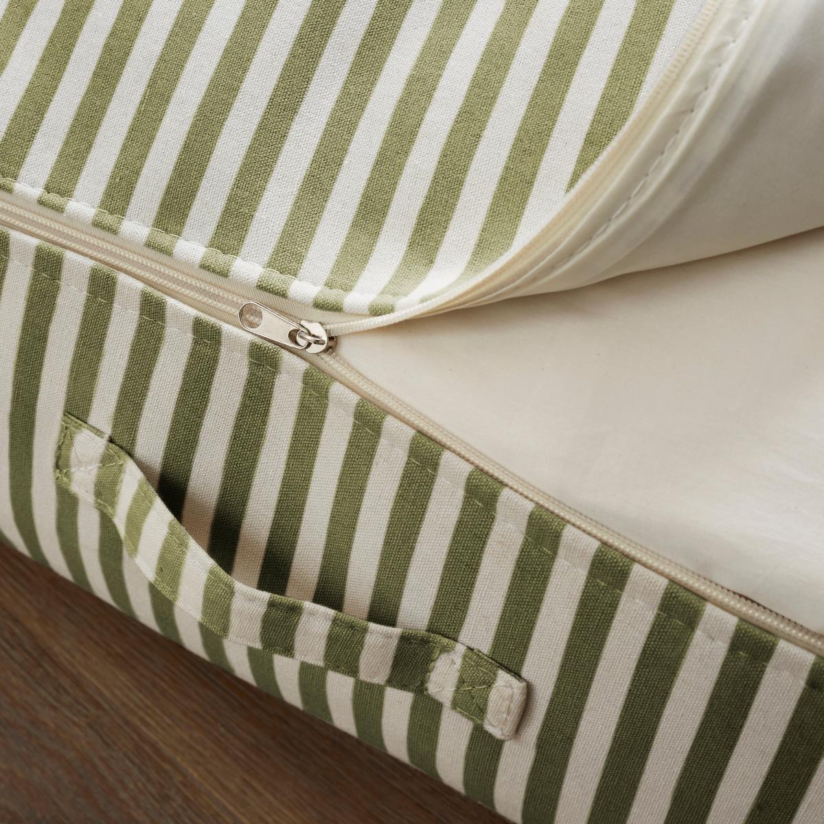 I love this underbed storage bag in olive because it combines functionality with a subtle pop of colour that can complement a variety of interior styles. It works particularly well in neutral or natural-toned bedrooms, adding a bit of visual interest without overpowering the space. The stripe design keeps it classic yet understated, making it versatile for both contemporary and traditional settings. Practical styling tips include using it to organise seasonal bedding, off-season clothing, or extra linens, keeping your space tidy. Place it under the bed for easy access and to maximise hidden storage, and consider pairing it with other olive or green accents-like cushions or throws-to create a cohesive and calming look.