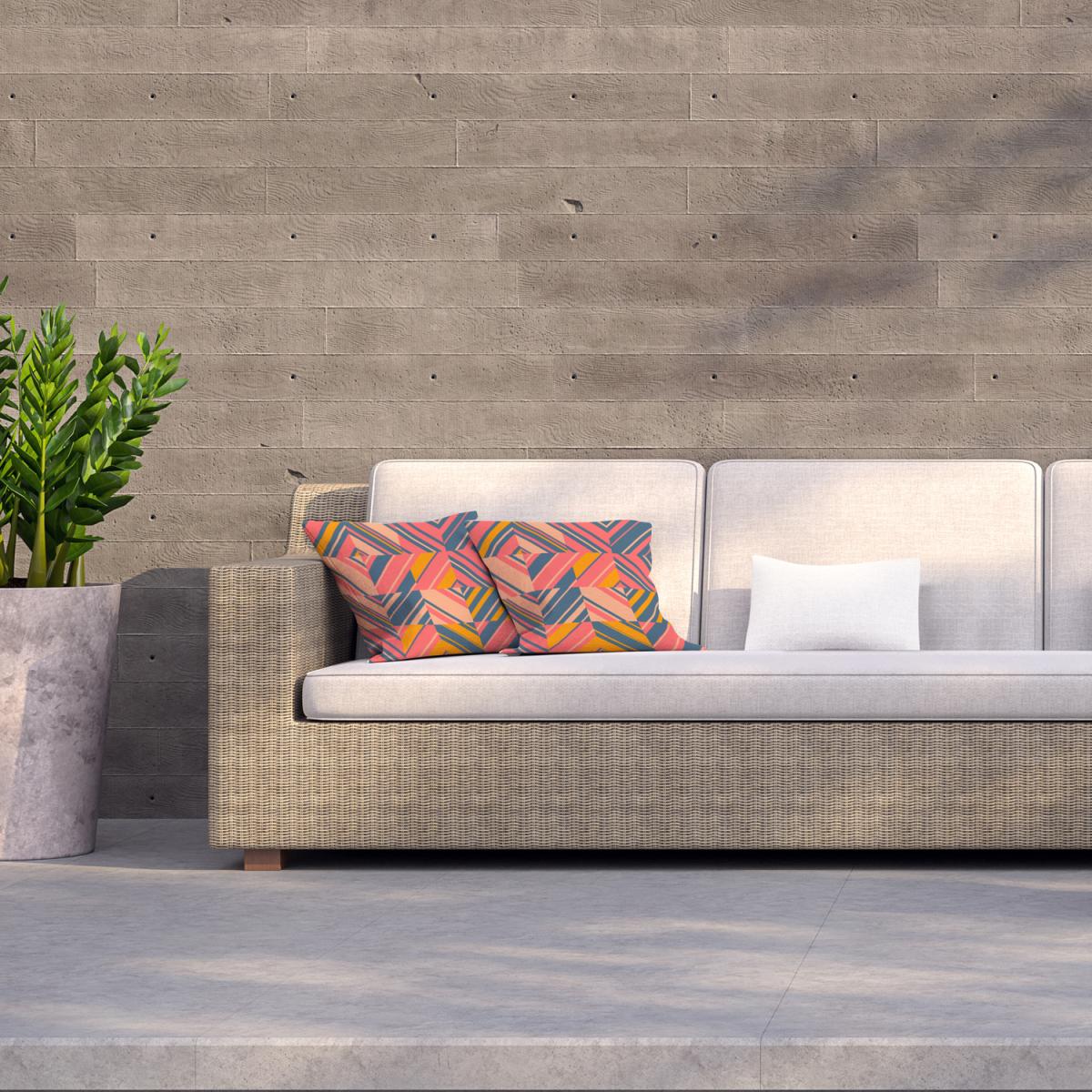 This cushion in the bright geometric pattern is a fantastic way to introduce colour and energy into outdoor seating areas. I love it because it adds a bold visual punch without overwhelming the space, making it a versatile choice for both modern and eclectic exteriors. It works particularly well on neutral sofas or armchairs, like in the image, to create a striking focal point. Practical styling tips include pairing it with other cushions in complementary shades or texture, and keeping the rest of the palette simple to let the pattern really stand out. It's also worth considering how the cushion’s fabric handles outdoor conditions, ensuring it remains vibrant and fresh for longer.