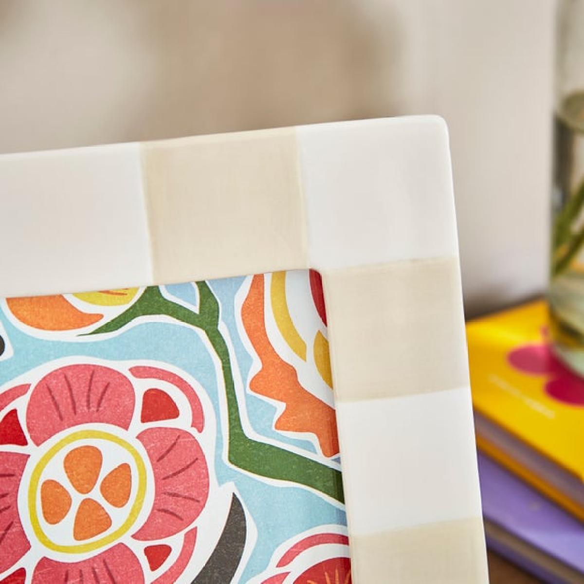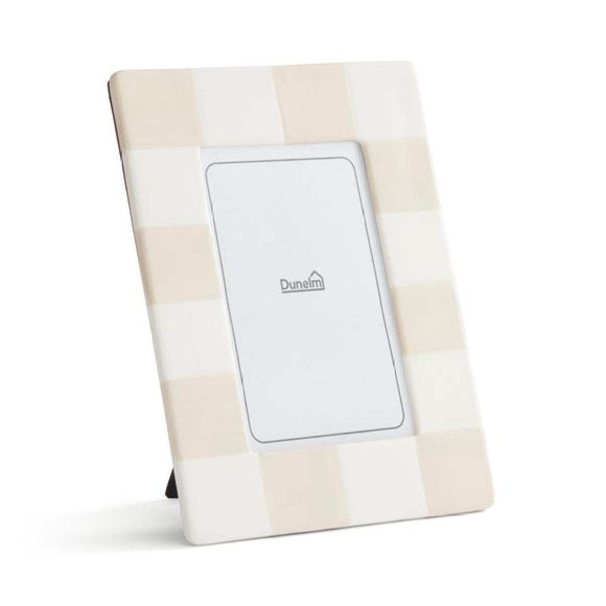 * Freestanding * Ceramic frame * Available in several colours * Choice of sizes * Striped design Add a playful touch to your shelves, mantelpiece or sideboard with this checkerboard ceramic photo frame. Available in pink, green or cream, it’s designed to suit a range of styles and spaces. The smooth ceramic finish feels as good as it looks, and it’s a breeze to keep clean with just a quick wipe. Freestanding and sturdy, it’s ready to display your favourite moments. With a choice of sizes, it’s easy to create a coordinated look or mix and match.