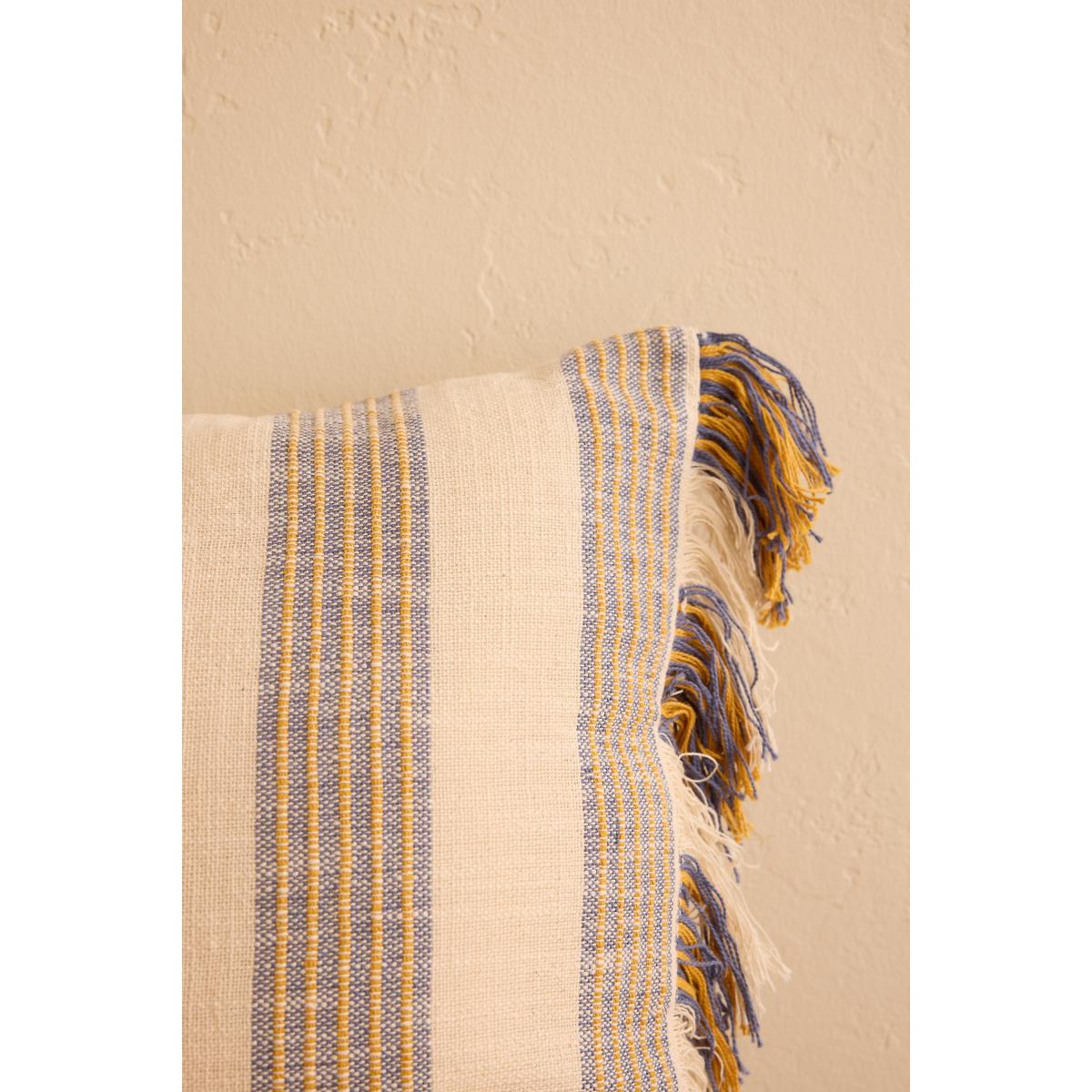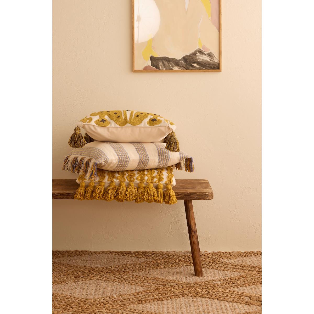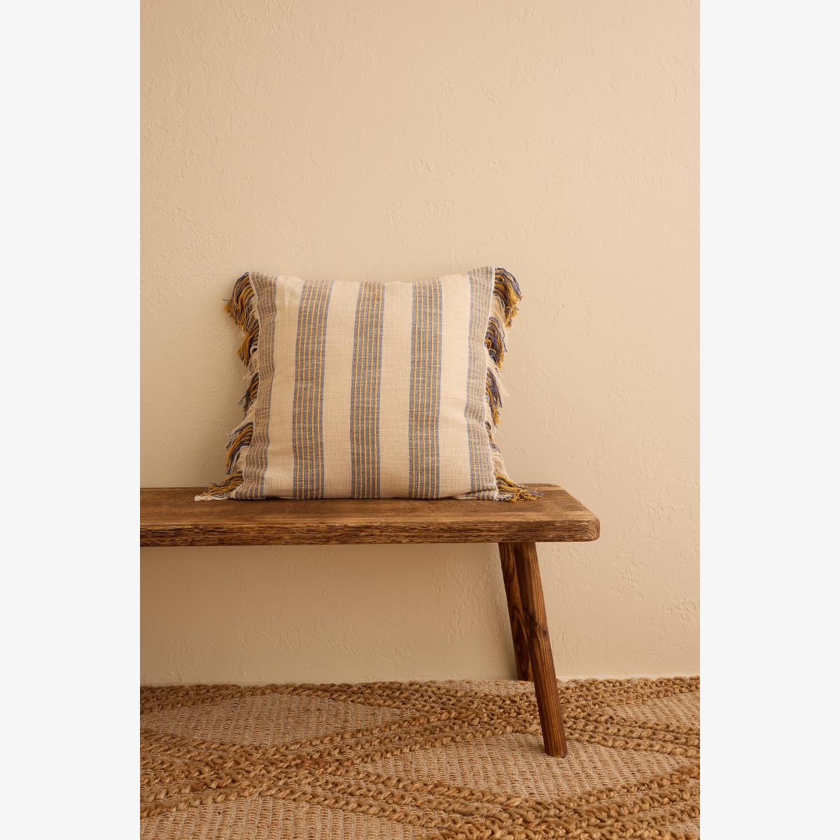 I love this cushion for its relaxed, textured look, which adds a cosy yet stylish element to both contemporary and boho-inspired interiors. Its striped cotton design with fringe detail makes it versatile enough to work on a neutral sofa or bed, introducing subtle pattern and tactile interest without overwhelming the space. It’s particularly effective layered with solid-coloured cushions in earthy tones or crisp whites, creating a laid-back, layered aesthetic. Practical styling tips include using it to soften the edges of a linen sofa or to add personality to a simple armchair. It’s a great choice for spaces where comfort and understated style matter.