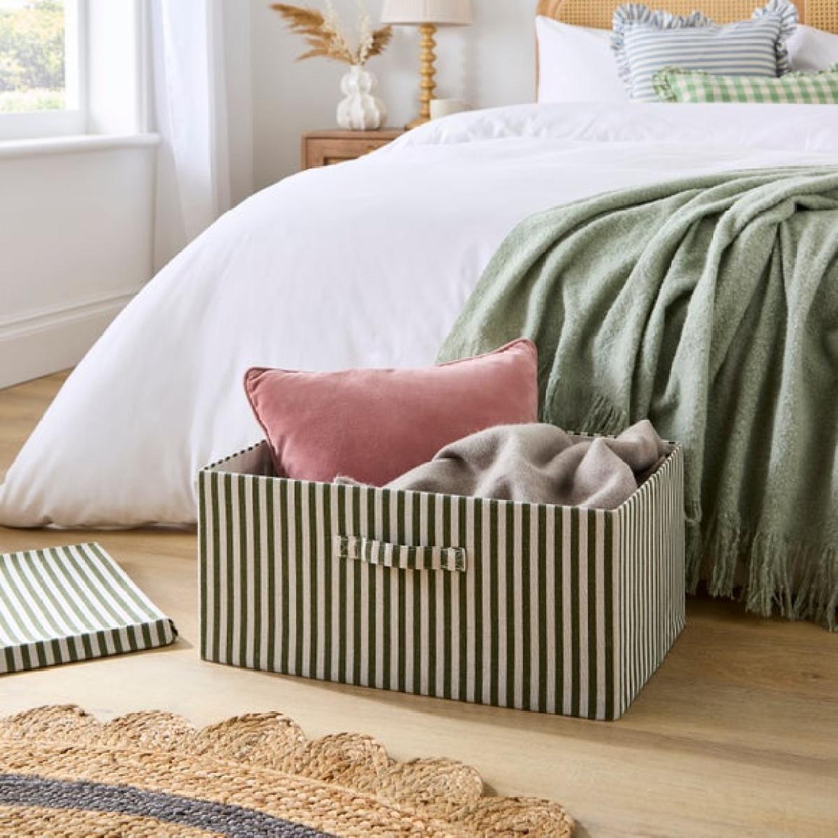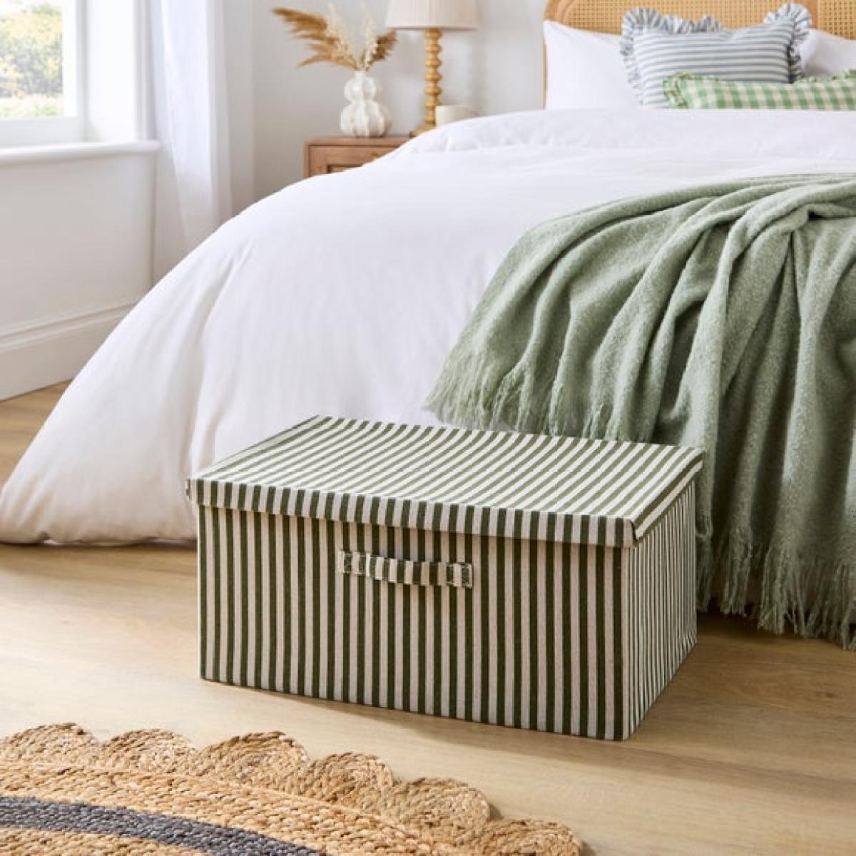 I really like this box for its versatility and practicality-it's perfect for adding some organisation without sacrificing style. The striped pattern brings a classic yet fresh look, making it suitable for a range of interiors, from cosy country homes to more contemporary spaces. It works particularly well in bedrooms or living rooms, where it can double as extra storage for bedding, towels, or craft supplies. My top tip is to use it as a decorative piece when not in use-perhaps as a footstool topped with a cushion or placed at the end of the bed. Its foldable design means it’s easy to stow away when not needed, which is ideal for smaller spaces or those who prefer a clutter-free look.