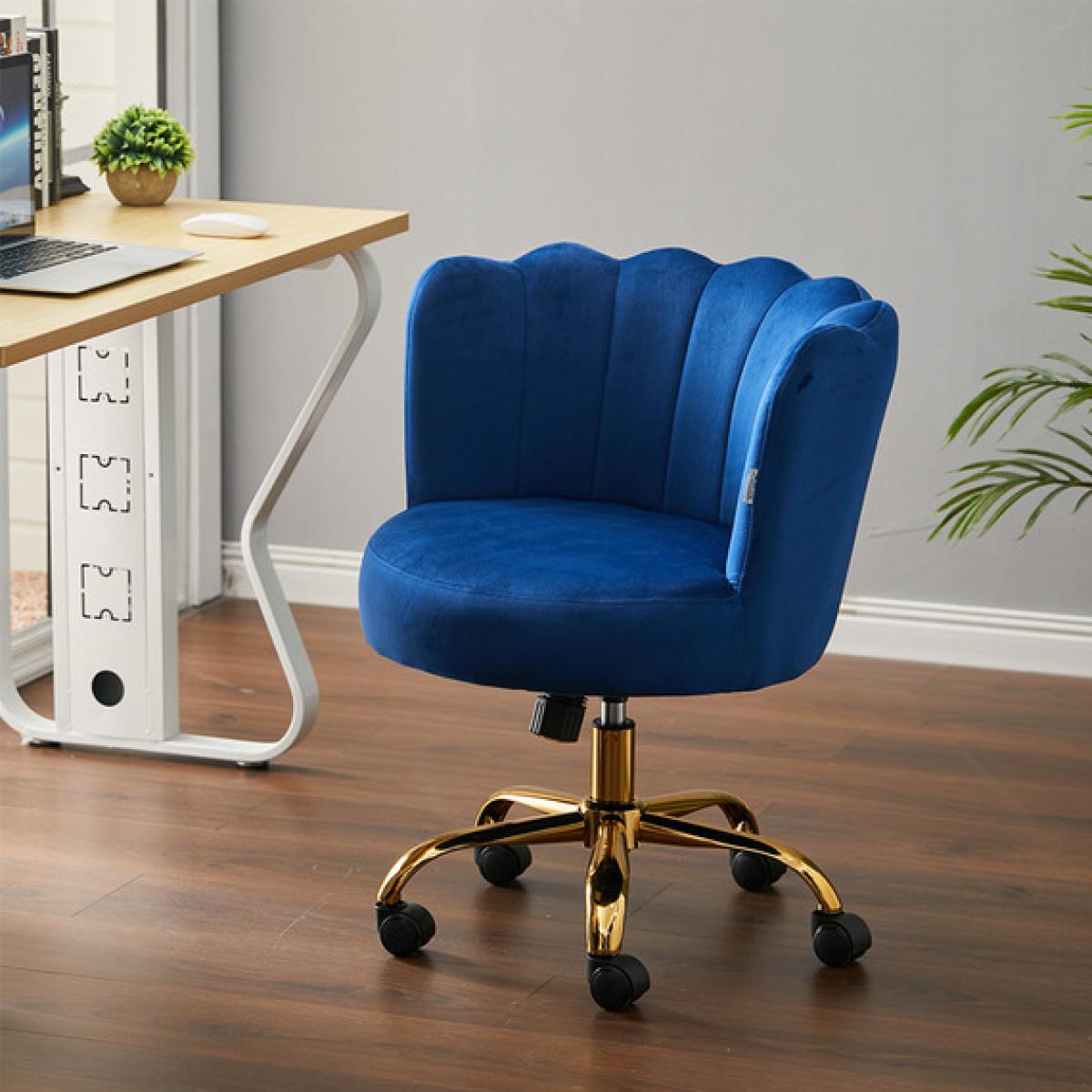 Striped Mid Back Office Computer Chair Velvet Upholstered Home Study - Blue