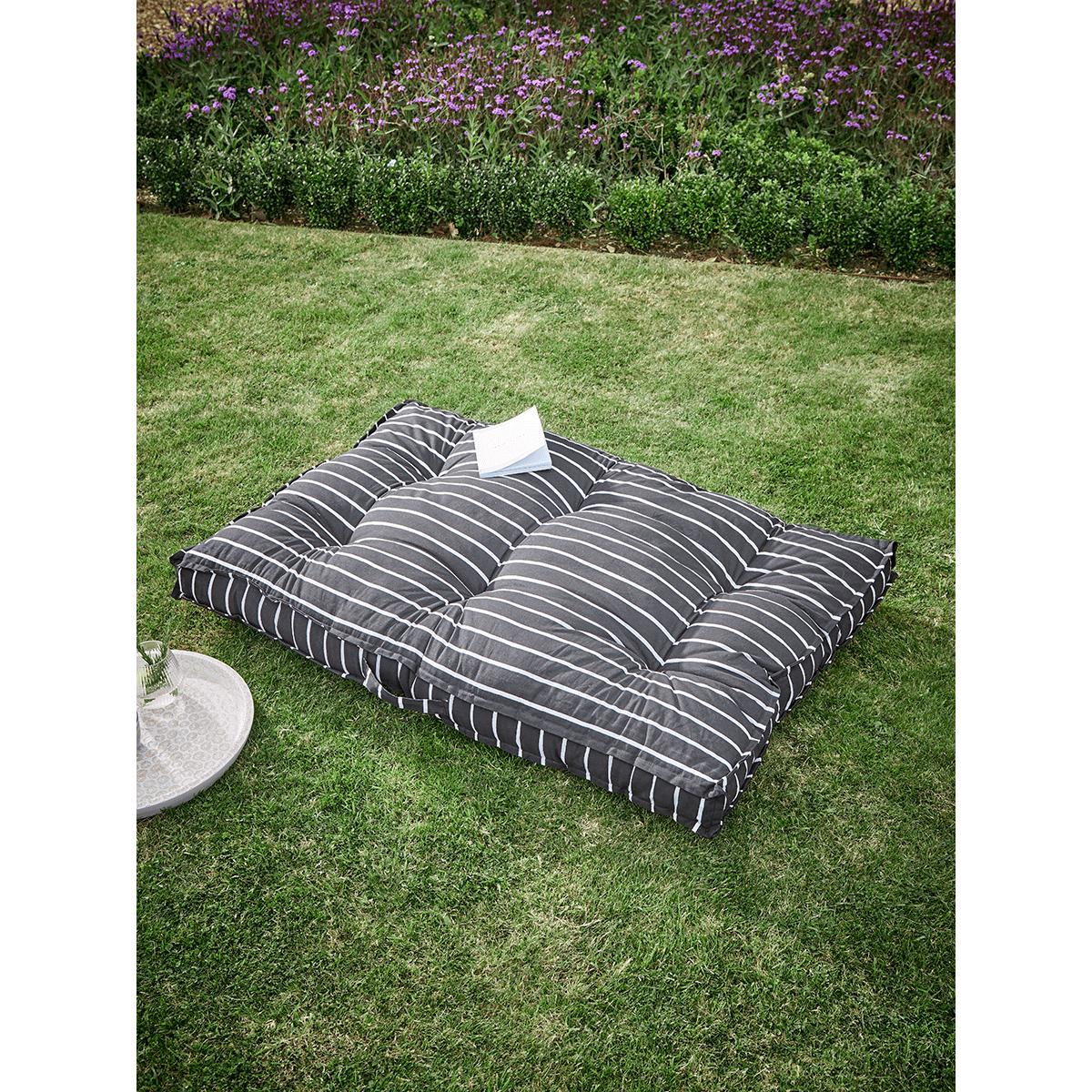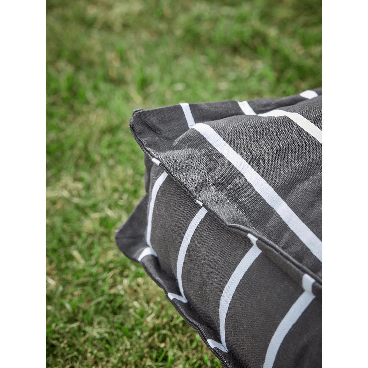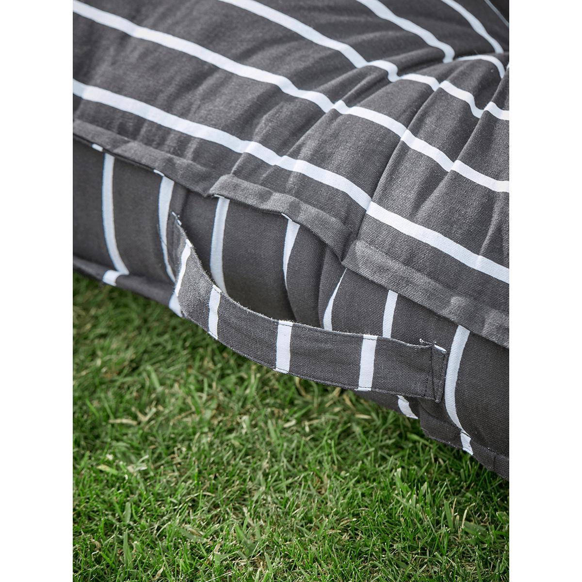 The perfect place to lounge with a good book, or play with your little one, our large, comfy floor cushion combines comfort and style for a gorgeous garden accessory. Each large, rectangular cushion is pillowy soft, with a cotton cover in charcoal with a narrow, white stripe and a six button tuft detail for cushioning.