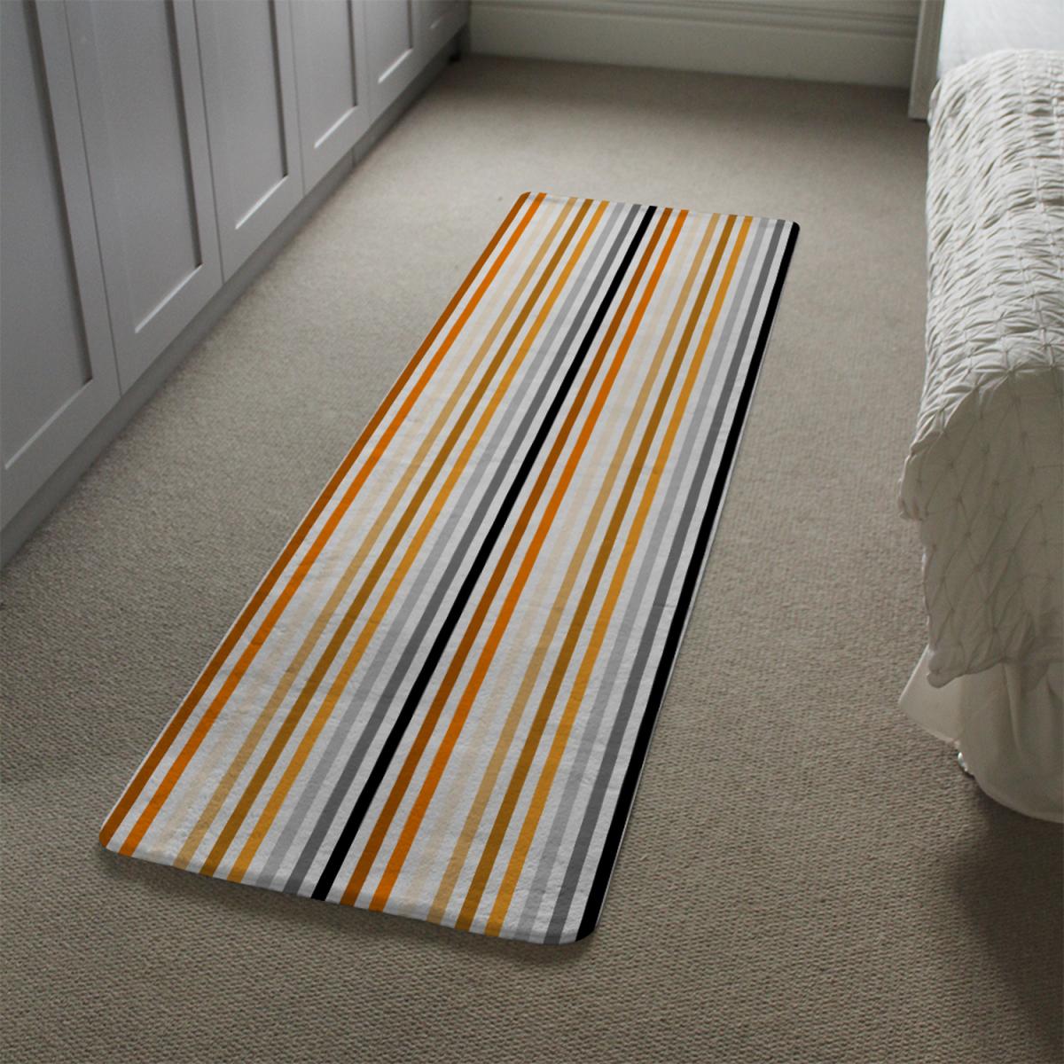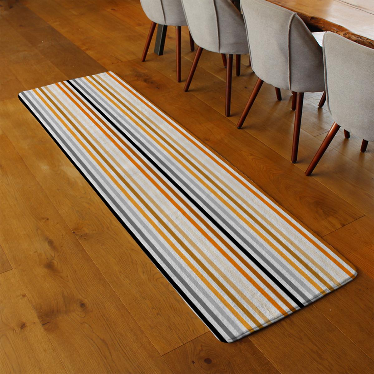 Striped Pattern Orange Black Gray Beige And Brown Runner Rug - Orange