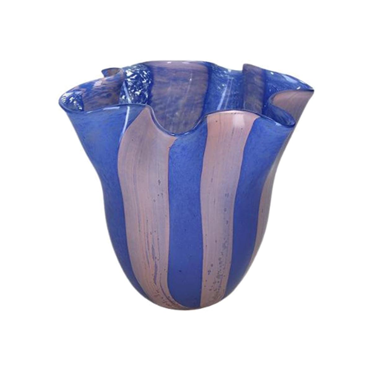 I love this vase’s bold, playful design-its scalloped edges and striking blue and pink stripes make it a real statement piece. It works beautifully in eclectic or modern interiors, where it can add colour and texture to a sideboard or mantel. For practical styling, I suggest keeping it simple-use it to hold fresh or faux flowers for added impact, or let it stand alone as a colourful sculpture. It mixes well with neutral palettes or other glassware, and works equally well in a standalone vignette or as part of a layered display. Just be mindful of the scale to ensure it doesn’t overwhelm smaller surfaces.