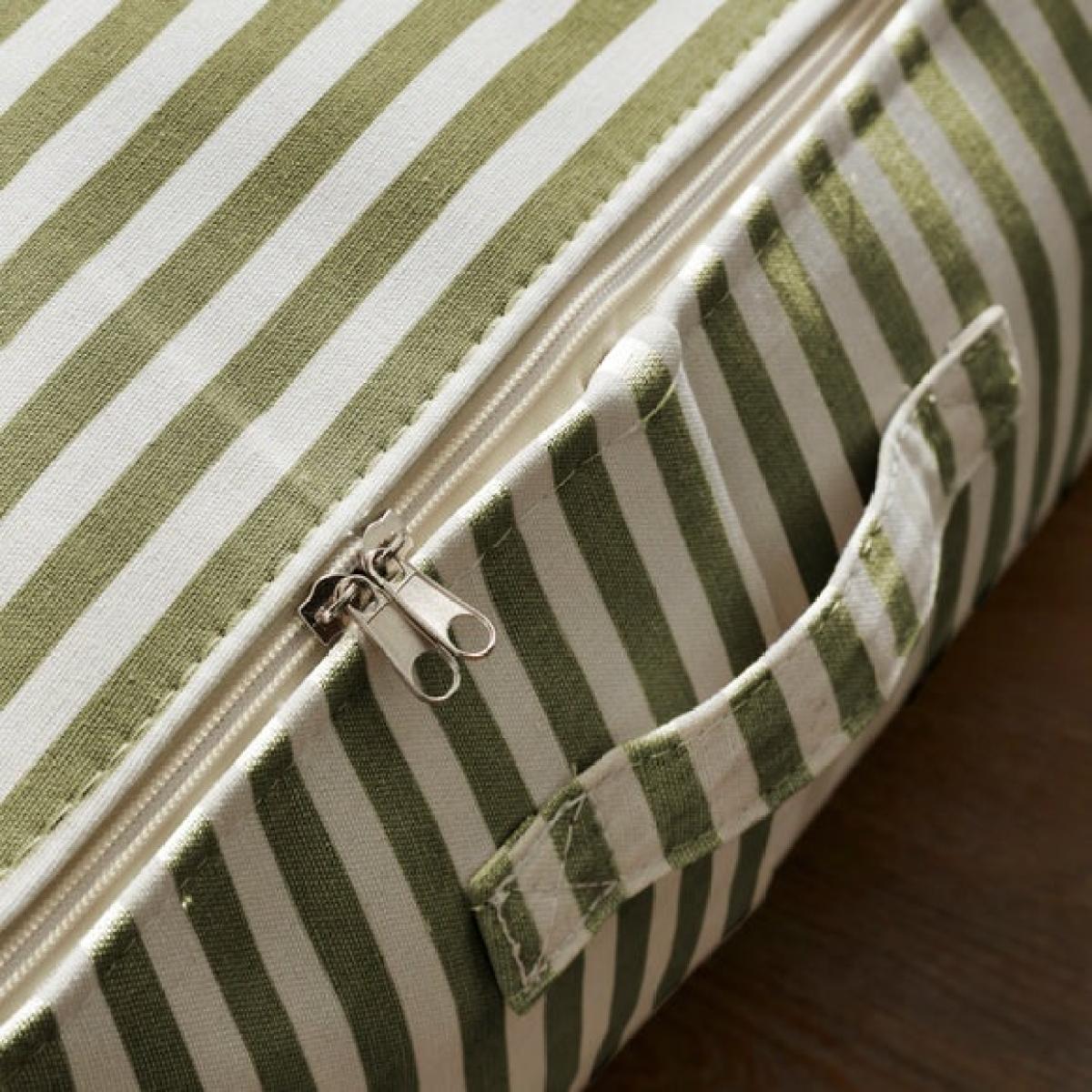 * Large storage bag * Foldable * Space saving Save space and stay organised with this striped underbed bag. The foldable, high-capacity design makes it great for stashing seasonal clothes, spare bedding or shoes, all while keeping everything tucked neatly out of sight.
