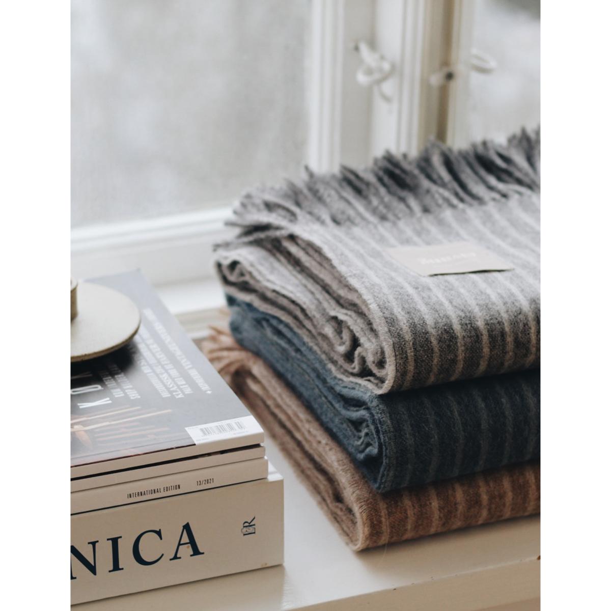 Stripes blanket 130x200 cm from Elvang Denmark is made from a mixture of recycled alpaca wool and sheep wool and has a stylish striped pattern. Like other blankets from Elvang, it is produced in Peru to contribute to economic growth and alleviate poverty for alpaca shepherds. This handmade rug is Fair Trade-labelled, which means that the manufacturers ensure good working conditions and a fair wage for all employees.