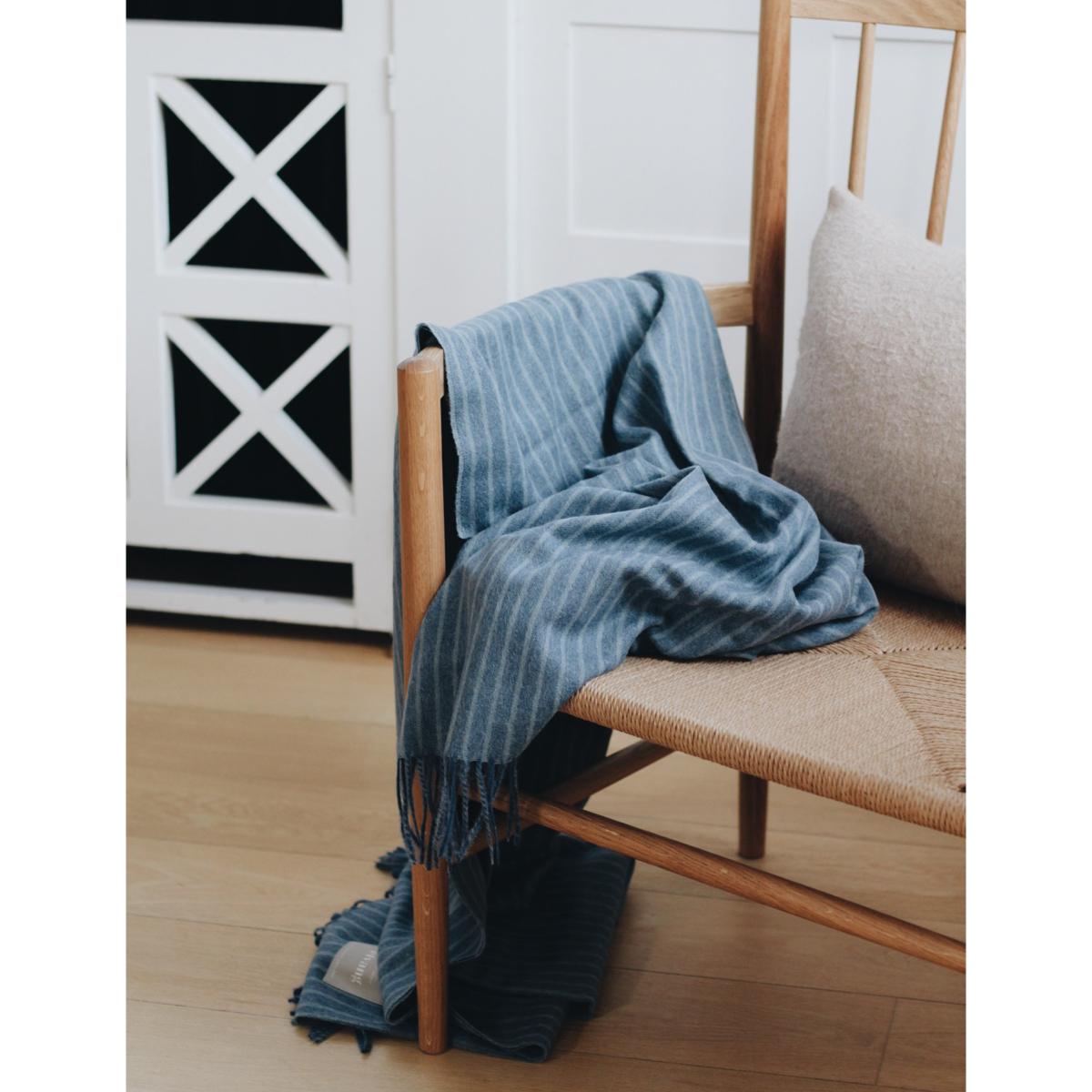 This throw in Mirage blue is a versatile piece that adds colour and texture to a variety of interiors. I love how its subtle stripe pattern brings a touch of modernity without overwhelming the space, making it perfect for both contemporary and more traditional settings. It works well layered over a neutral sofa or bed to introduce a calming blue tone, and its size allows for easy styling as a throw or even a light bedspread. Practical tips include pairing it with other shades of blue or neutral tones for a seamless look, and folding it neatly over the arm of a chair or at the end of a bed to keep it within reach while enhancing the overall aesthetic.