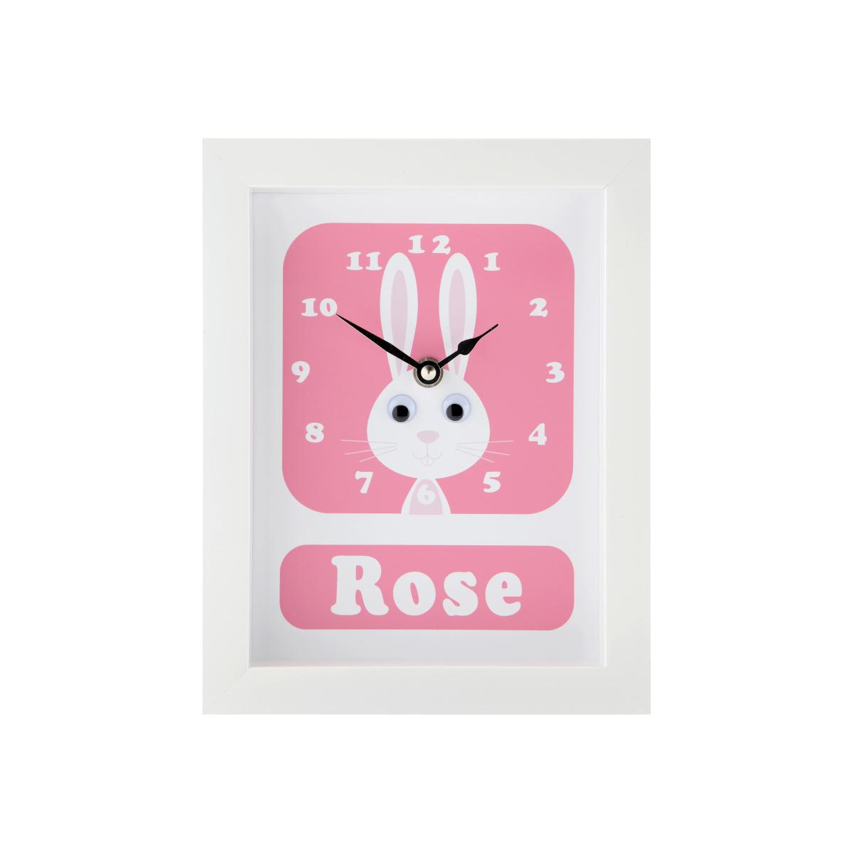Fun and exciting, this bright, personalised clock is the perfect wall fixture for any children's room. Telling the time will be a joy, as the cute characters and googly-eyes keep kids amused. Completed in a gorgeous white frame and behind a glass pane, the clock can be both hung or stood on its base. It features a high-quality non-ticking clock mechansim, with silver toned metal hands. It's presented in a tissue wrap and gift box, making it the perfect present for birthdays or any special occasion. Make it a truly special gift by personalising with the recipient's name. Follow these three simple steps and you’ll receive your personalised item within 7 days of ordering.