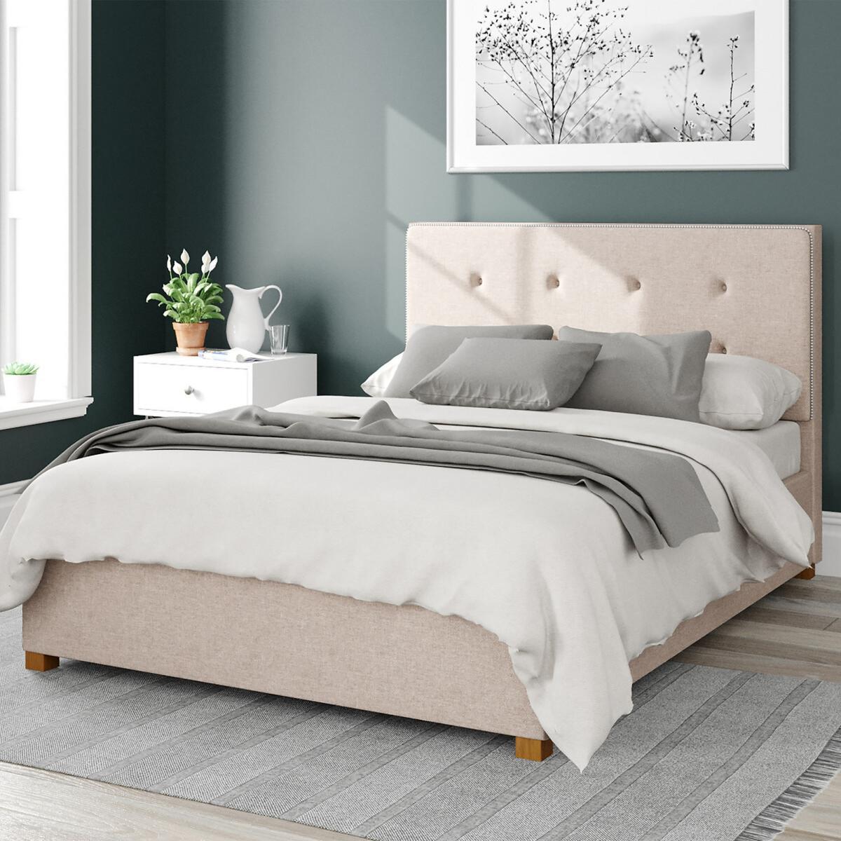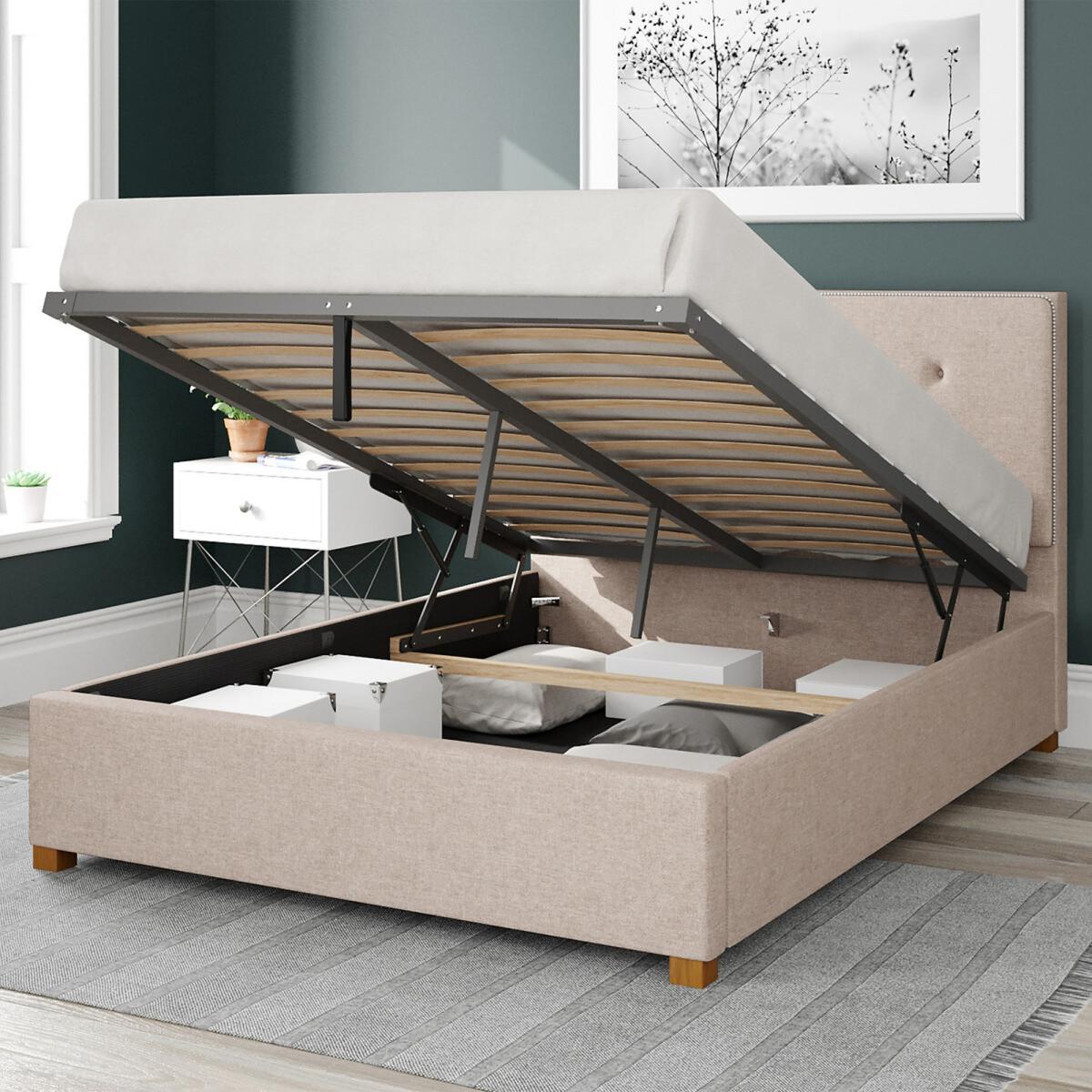 Please note: this product cannot be delivered to all Offshore Islands, Northern Island or Republic of Ireland. This product will be dispatched by one of our trusted suppliers. You’ll be contacted by their selected courier about your delivery. Please note this item will be delivered to your doorstep. Quality upholstered ottoman storage bed, hand crafted in the UK.Each headboard is constructed with deep foam padding perfect for sitting up in bed and reading. We believe quality has no short cuts, meaning all our designs are hand upholstered by our skilled craftsmen. Our UK ottoman design features chunky upholstered panels, which means it is built to last. Quality sprung slats improve comfort and mattress lifespan. The easy lift ottoman mechanism is supported with quality gas pistons, enabling the storage to be accessed with minimal effort. Once the ottoman is elevated it will hold position, allowing hands free access to storage. Our ottomans offer the perfect storage solutions for rooms with no or limited space with a spacious storage area of approximately 28cm. The fabric base attaches to the underside of the bed, protecting your stored items. Each ottoman is finished with hardwood feet which have been hand turned and varnished. Self Assembly Required. Swatch service: We offer a FREE swatch service. Please email samples@aspire-furniture.co.uk and include the below information:Please include 'La Redoute' in the title of your email. Name and address:Product: Presley Ottoman Bed. Fabric: Twill/Knit. Colour: (in order to receive the correct colour please use the table below to identify correct reference)Your swatches will be delivered within 10 working days (subject to availability) Colour Description Colour to Request Charcoal Charcoal Twill Grey marl Mineral Knit Chocolate Chocolate Knit Grey Grey Twill Natural Natural Twill Product Dimensions: Single: 112cmx100cmx209cm. Small Double:112cmx130cmx209cmDouble:112cmx147cmx209cmKing:112cmx160cmx219cm Super King:112cmx190cmx219cm. Please remember to measure your available space before ordering. Single:Parcel 1 Packaged Dimensions 140cmx 113cmx 12cm Weight: 12kg Parcel 2 Packaged Dimensions 212cmx 32cmx 19cm Weight: 13kg Parcel 3 Packaged Dimensions 240cmx 180cmx 12cm Weight: 18kg. Small Double:Parcel 1 Packaged Dimensions 140cmx 113cmx 12cm Weight: 19kg Parcel 2 Packaged Dimensions 212cmx 32cmx 19cm Weight: 17kg Parcel 3 Packaged Dimensions 240cmx 180cmx 12cm Weight: 22kgDouble: Parcel 1 Packaged Dimensions 171cmx 113cmx 12cm Weight: 22kg Parcel 2 Packaged Dimensions 212cmx 32cmx 19 cm Weight: 18kg Parcel 3 Packaged Dimensions 240cmx 180cmx 12cm Weight: 23kgKing:. Parcel 1 Packaged Dimensions 171cmx 113cmx 12cm Weight: 27kg Parcel 2 Packaged Dimensions 212cmx 32cmx 19cm Weight: 22kg Parcel 3 Packaged Dimensions 240cmx 180cmx 12cm Weight: 25kg Super King: Parcel 1 Packaged Dimensions 201cmx 113cmx 12cm Weight: 30kg Parcel 2 Packaged Dimensions 212cmx 32cmx 19cm Weight: 25kg Parcel 3 Packaged Dimensions 240cmx 180cmx 12cm Weight: 27kg. Upholstered Fabric Composition: Twill/Knit Fabric
