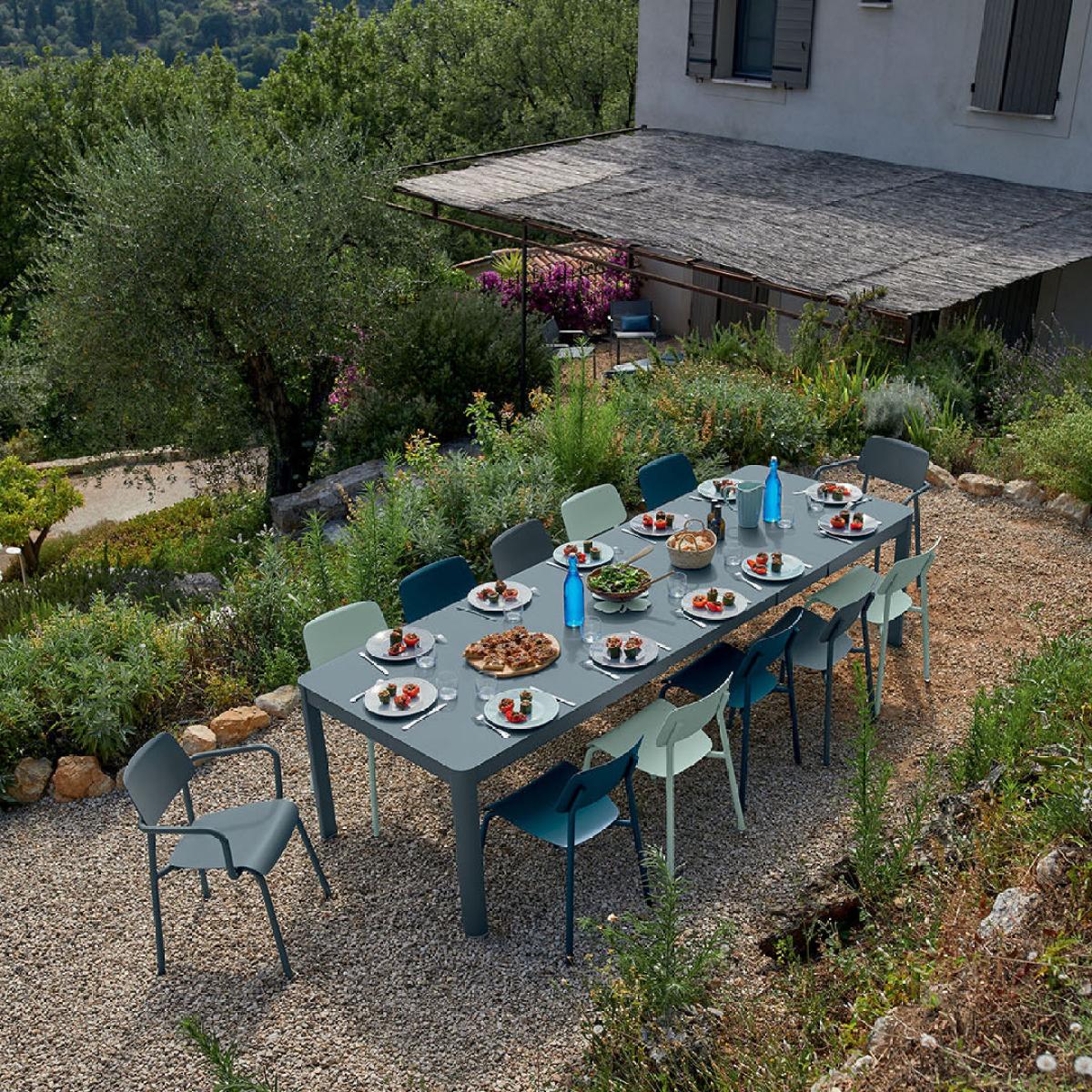 This new Fermob creation has everything to become as iconic as the famous BISTRO chair! Once again, the pencil stroke of an excellent designer, Tristan Lohner, to produce a new version of the school chair. STUDIE reminds us of the sweet times of childhood, while imposing a refined, contemporary style. Its 100% aluminium structure gives it strength and lightness, while the noiseless pads, patented by the brand, make it easy to live with. The curved seats follow the lines of the body for optimal comfort, attention to detail and ergonomics, the true signature of the brand. They are also stackable, and so easy to store. Another undeniable benefit, these pretty seats are eco-designed, so they can be taken apart and are recyclable. STUDIE is not academic, it’s universal! In restaurants, on private terraces and even in the heart of our homes, it’s endearing and easy to live with.