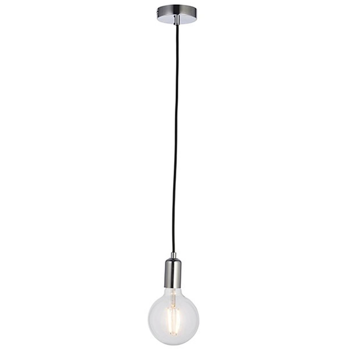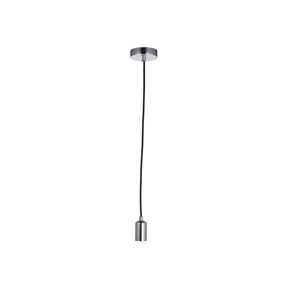 Create that cool urban look with this industrial pendant. Simple in construction with a single smooth chrome plated lamp holder suspended from height adjustable black fabric flex.