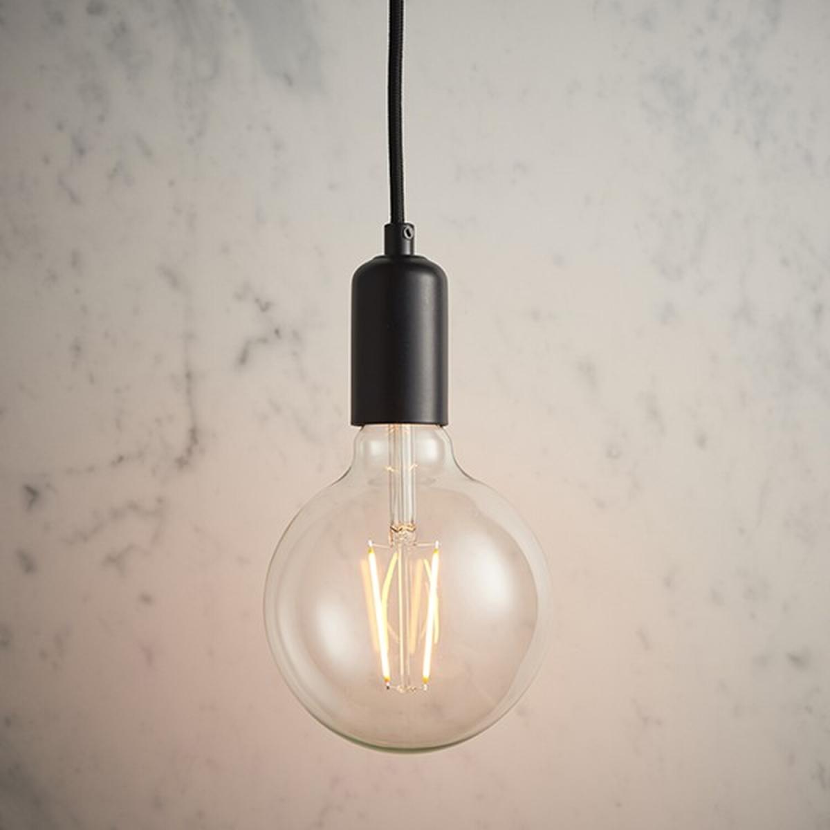 Create that cool urban look with this industrial pendant. Simple in construction with a single matt black painted lamp holder suspended from height adjustable black fabric flex.