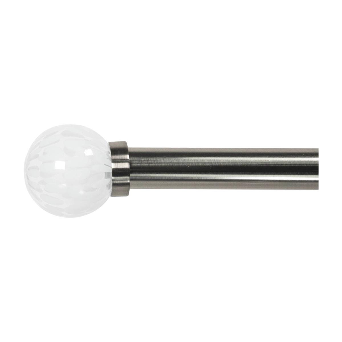 Upgrade your curtains with the Studio Glass Finial Pair in white. The Studio Glass finish adds a modern touch to your curtains, and the pair fits perfectly with a 25/28mm pole. The satin steel and white finish give a sleek look to any room.