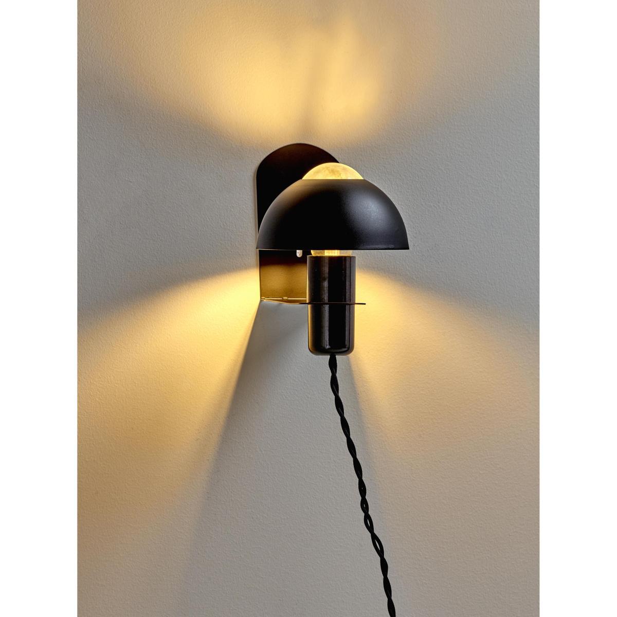 Simplicity and practicality are the common thread of the Studio Simple creations, which are marked by a plain design and a specific quality material choice. This lamp is made up of three items to assemble: a metal wall fastening, a cable with a switch and a round lampshade. The lampshade is simply placed on the bulb (bulb not included with a glass globe of a diameter of Ø 9. 5 cm minimum) and does not completely hide it: it allows the top of the globe to be seen for an original effect. The Studio Simple lamp offers a wonderful mix of materials: the metal and wood combine harmoniously. The minimalist wall fastening leaves the structure of the wall light visible, as well as the elegant fabric cable. The shapes and materials complement each other and respond to each other to create a lamp with a sculptural silhouette.