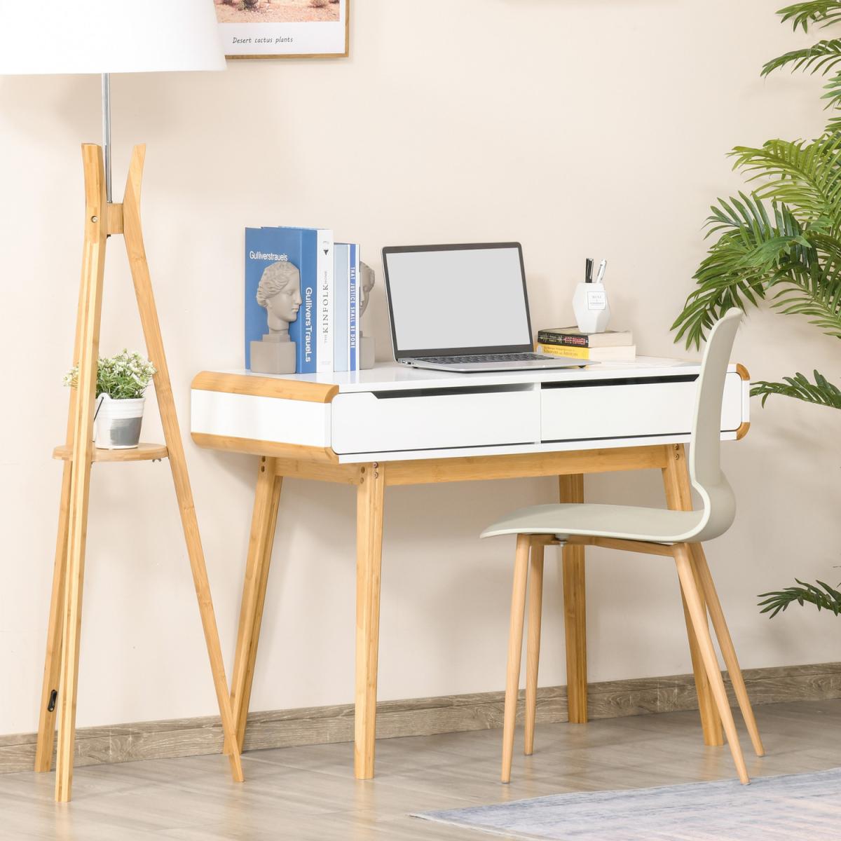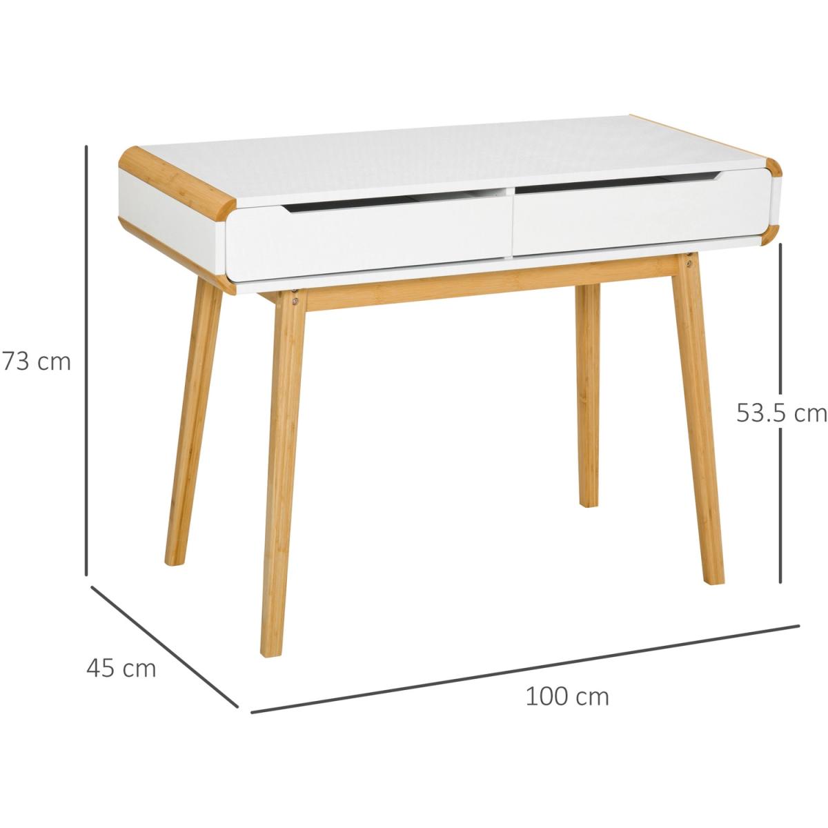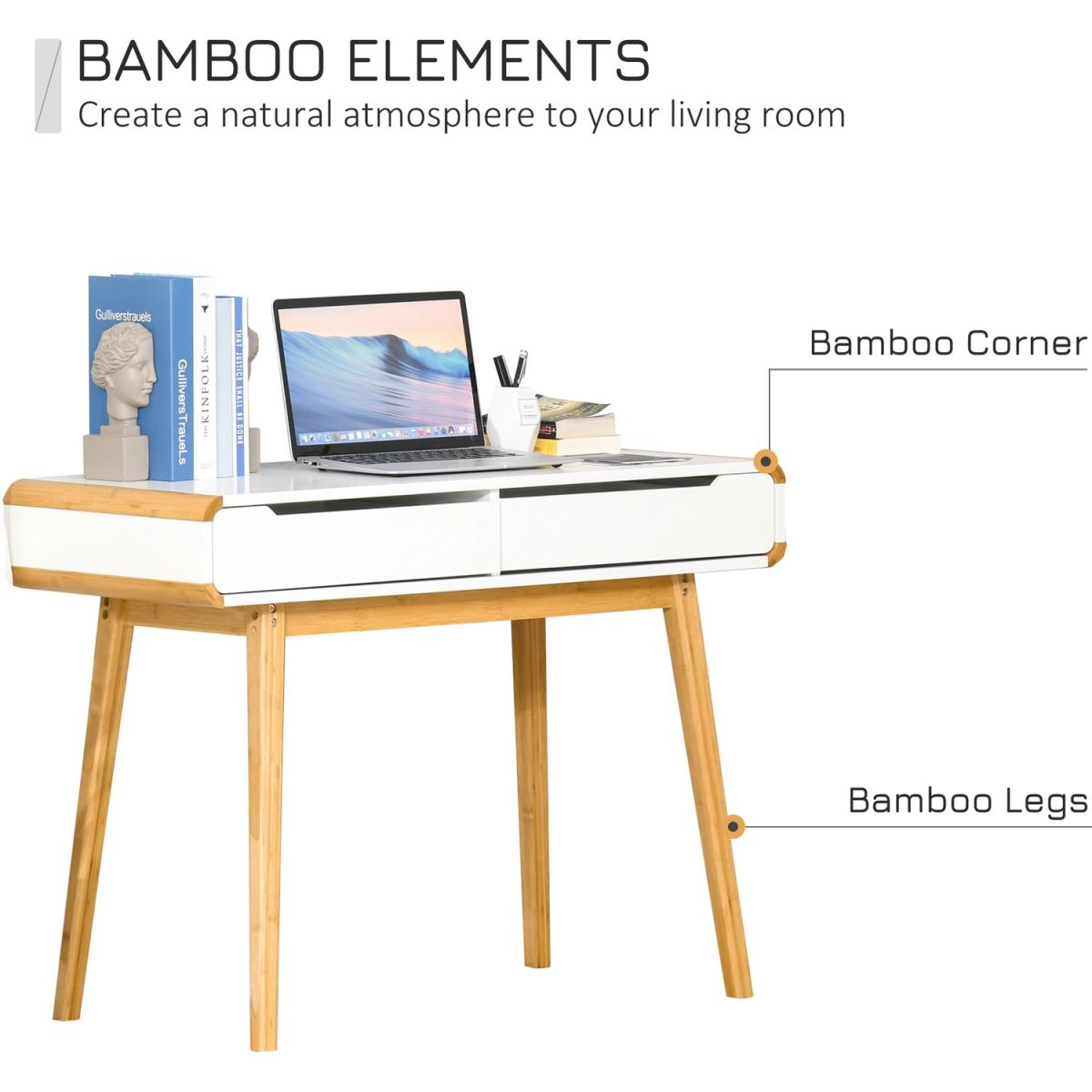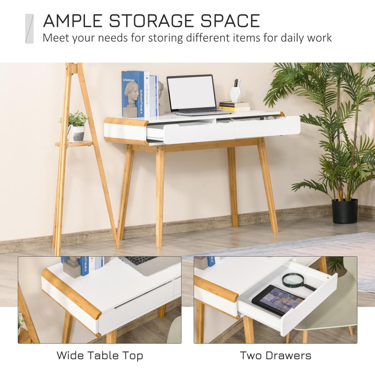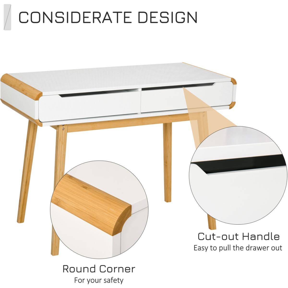 Keep your designated workspace clean and simple with this desk from HOMCOM. Using MDF for a durable structure, it is fitted with bamboo corner accents and legs for extra sturdiness in the places which need it most. It features two drawers for convenient storage, with the cut-out groove handles making each easy to open and close. The large and flat worktop gives you plenty of space, and it's finished with a water-resistant coating for extra protection.