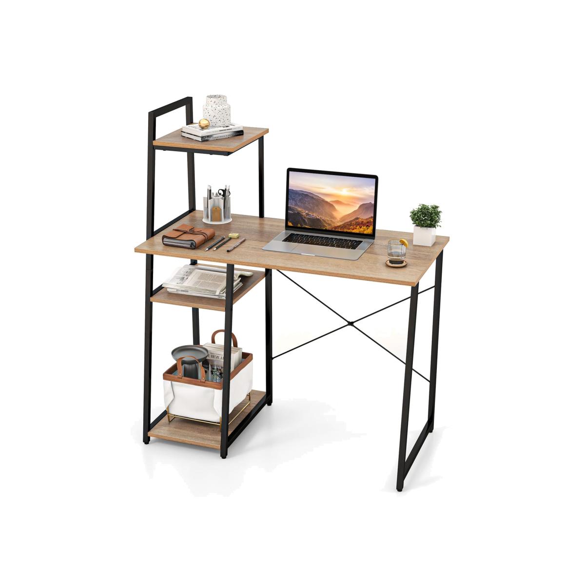 Compact yet efficient, the home office desk serves well as an all-in-one addition. Boasting a 98cm. L x 50cmW desktop, it offers ample work surface while featuring a side bookshelf and host stand for added storage. Crafted from quality metal and boards, the study writing desk supports up to 125kg with stability provided by its X-shaped frame and adjustable foot pads. Versatile in function, it adapts seamlessly to various settings from home offices to art studios. The home office desk is easy to maintain thanks to its smooth surface.