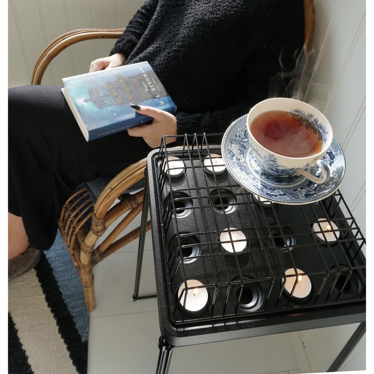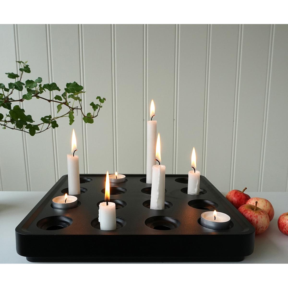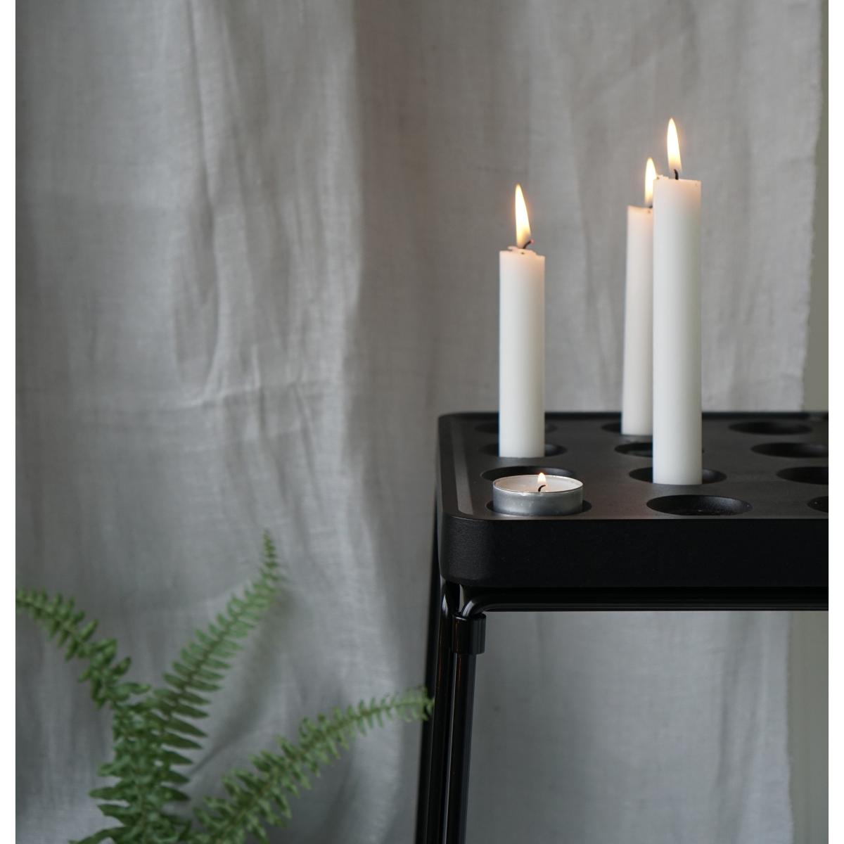 I really like the black stump-shaped candle holder for its sleek, contemporary look and versatile design. Its large size makes it perfect for creating a centrepiece or adding a bold statement to a sideboard, coffee table, or mantel. It works well in modern, minimalist interiors, as well as in more eclectic or industrial settings, where its simple form can stand out. For practical styling, consider using an array of candles with varying heights or colours to add visual interest, or keep it monochrome for a more understated, sophisticated vibe. Its grid layout also makes it easy to create a layered look by grouping it with other candle holders or decorative objects, making it a functional yet stylish addition to various interior schemes.