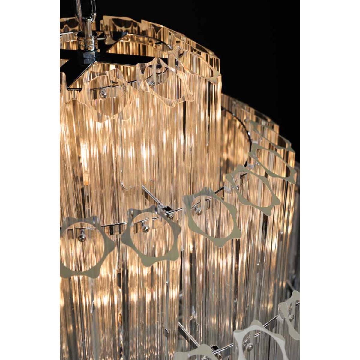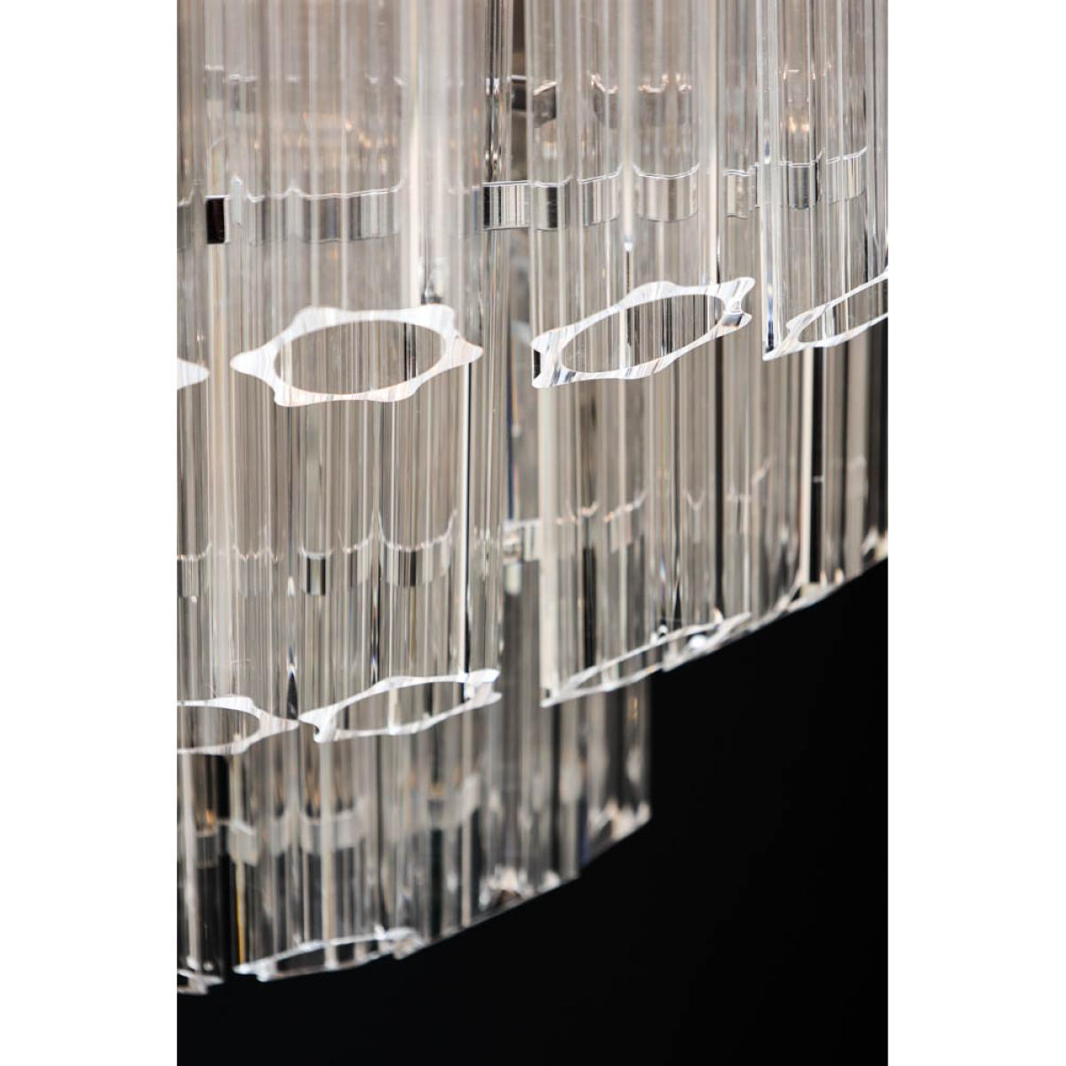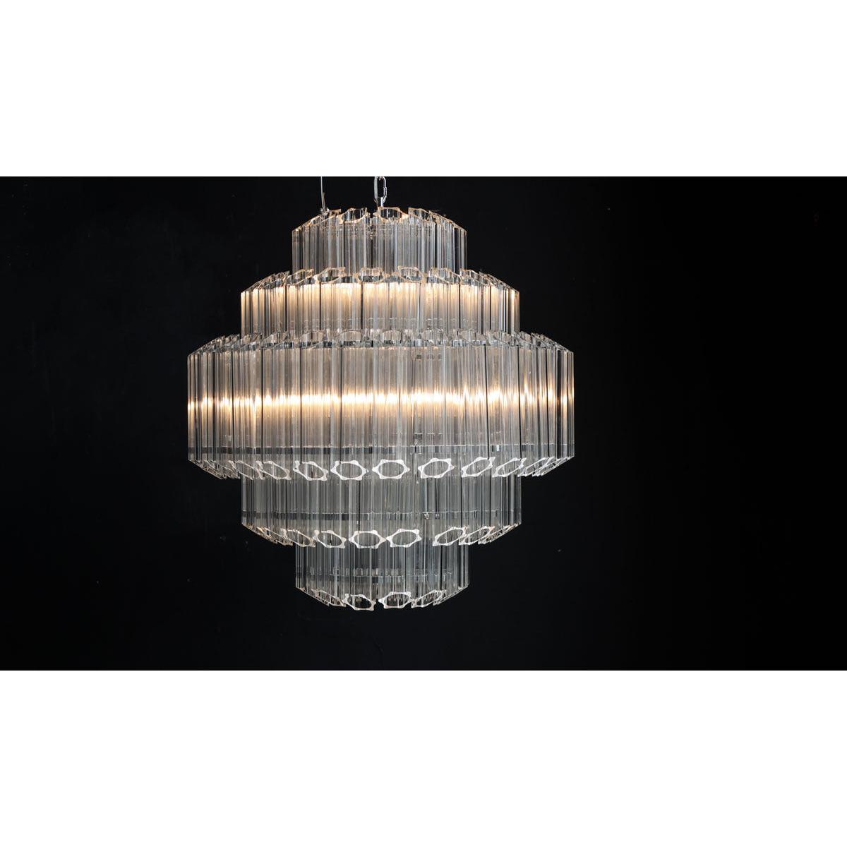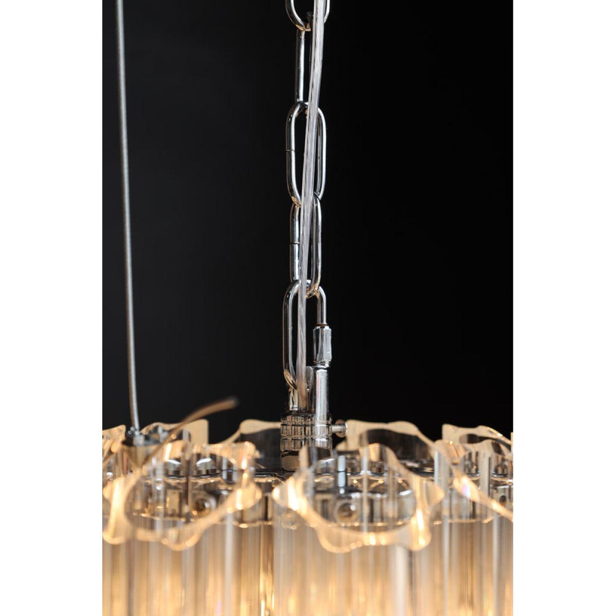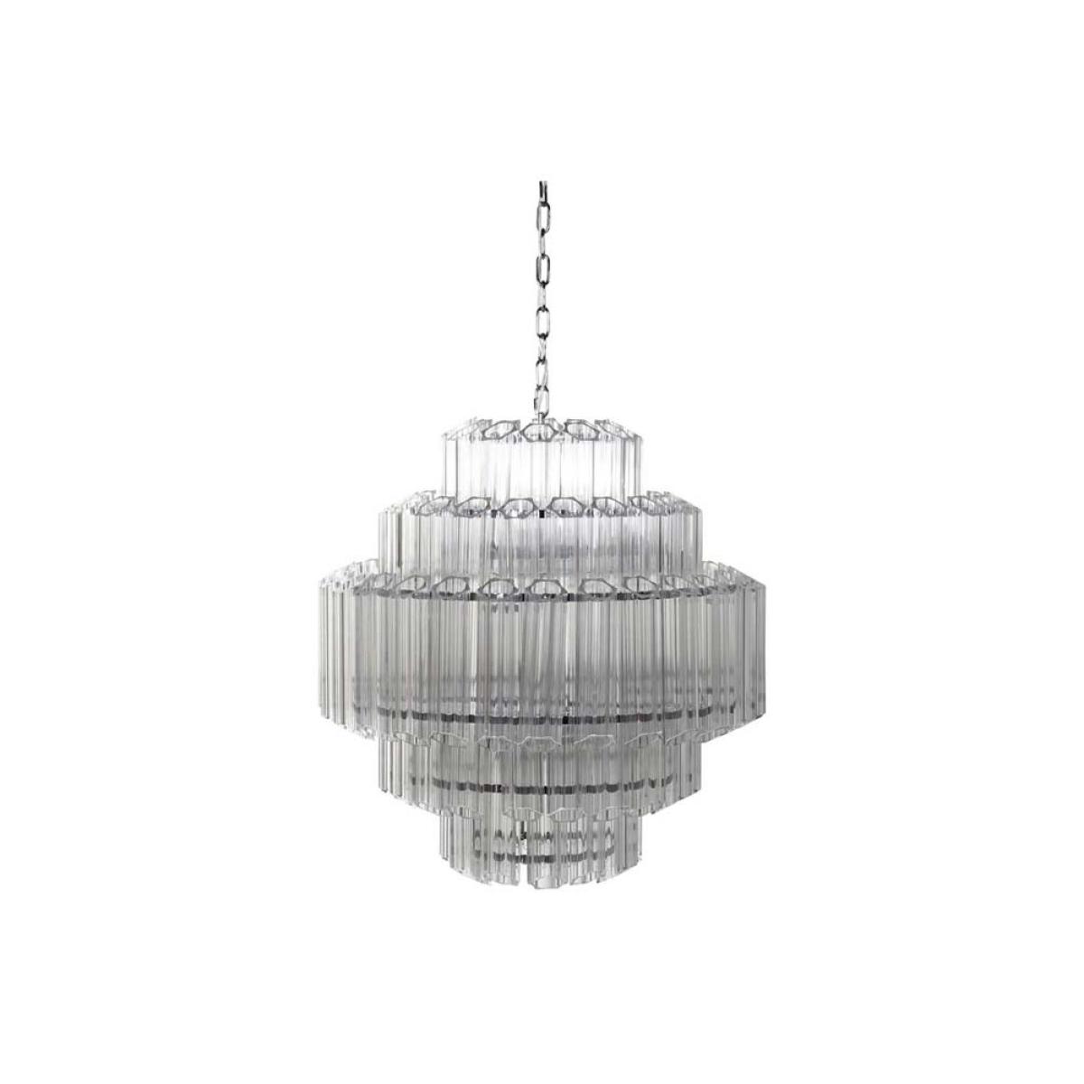 About The Stunning Art Deco Crystal Chandelier Showcasing a glamorous vintage-inspired design, the Stunning Art Deco Crystal Chandelier will make a showstopping statement in your interior décor. Showcasing five layers of fine columns of crystal glass in a striking linear structure, this extraordinary chandelier looks like one of those you’d find in a luxury hotel. Fixed into an iron frame with a shiny chrome finish, this tiered chandelier exudes a wonderful mix of modern meets vintage styles. This glass chandelier measures 65cm in height and 65cm in diameter with an overall height of 175cm including the chain. The flex length is 130cm. Why We Think You’ll Love The Art Nouveau Chandelier Based on a traditional chandelier, this crystal chandelier just screams art deco glitz and glamour! Making a statement just about anywhere you choose to style it, the glass panels will not only help it envelop a radiant glow but it will also inject a striking new dimension into your interior scheme. Luxurious and theatrical, this statement chandelier is most definitely a sight for sore eyes! Where To Style The Large Crystal Chandelier This unique chandelier would make a magnificent hallway light as it will inject instant wow factor from the moment you walk through the door. Displaying this extraordinary chandelier in your hallway also sets the tone for the rest of your interior décor throughout the house, so why not introduce your home with some showstopping glamour! This crystal ceiling light would also make a charming statement hung above a grand dining table or as the central light in a luxurious living room.