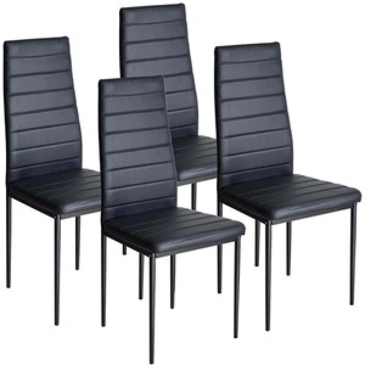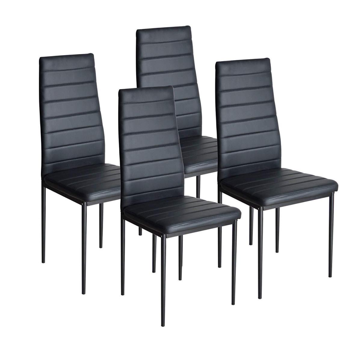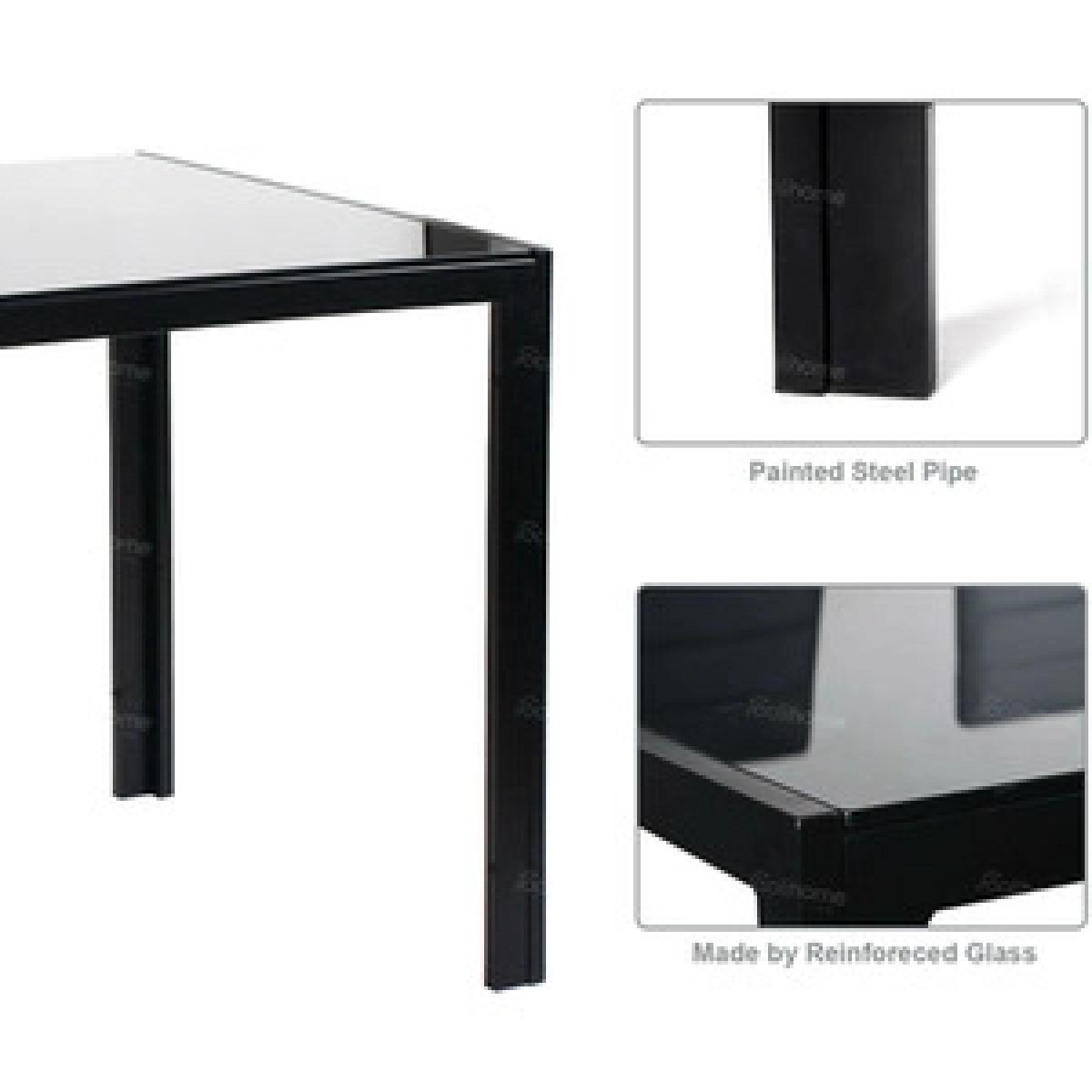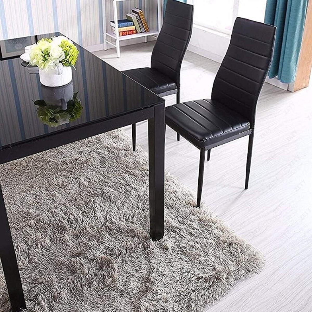 The table comes with 4 black faux leather chairs, easy to assemble. All accessories and instructions are included. Italian Style Designer Black Glass Dining Set With 4 Faux Leather Padded Chairs. Table made of 8mm high-quality tempered glass, easy to clean. The 1-year warranty will replace any faulty or broken part during your use for the table.