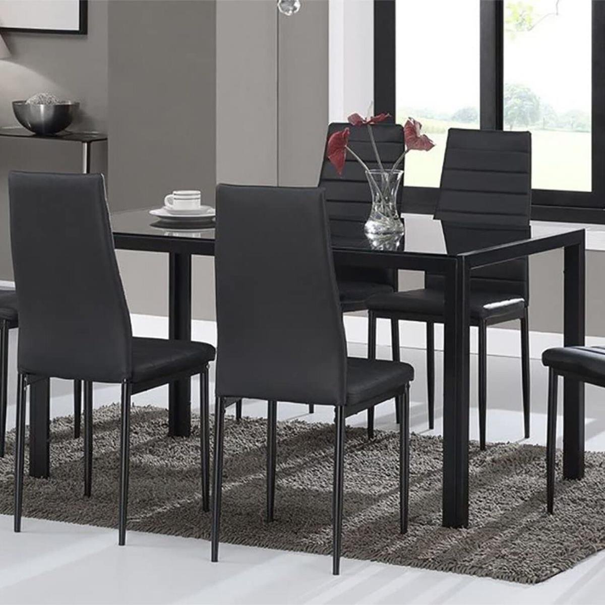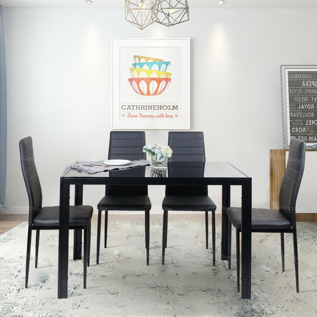 Stunning Glass All Black Dining Table Set With 4 Chairs - Black