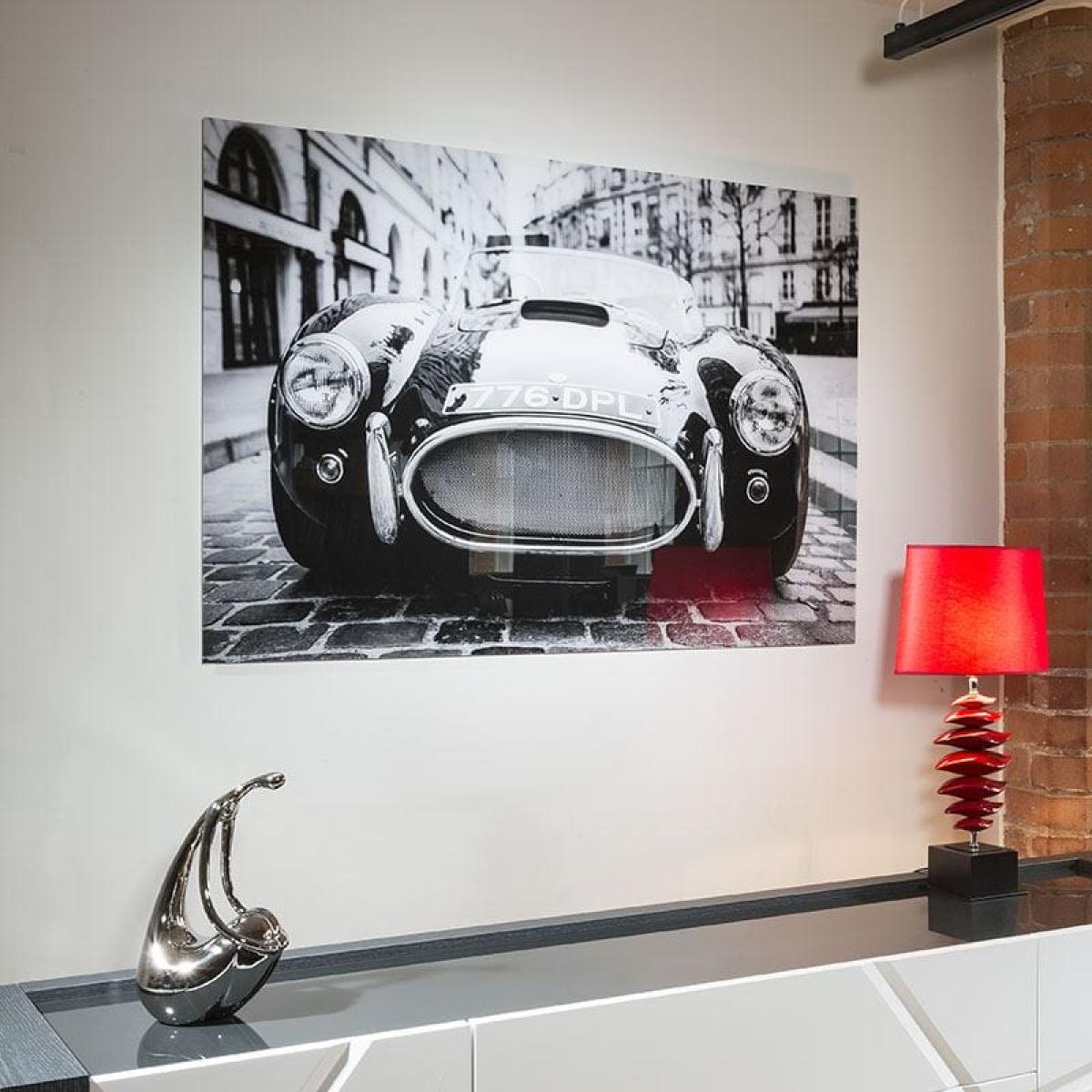 This large photographic art piece of the classic Cobra lends an instant statement to any space, especially suited for a contemporary or industrial interior. I love how the monochrome finish keeps it versatile, making it easy to pair with various colour schemes and textures. It works particularly well above a sofa or mantle, adding a focal point without overwhelming the room. Practical styling tips include balancing it with simpler, understated furnishings to let the image stand out, or surrounding it with vintage accessories for a cohesive look. Its sizeable scale benefits from proper hanging at eye level, and ensuring good lighting will really enhance the crispness of the photo - a knockout piece that effortlessly combines art and automotive passion.