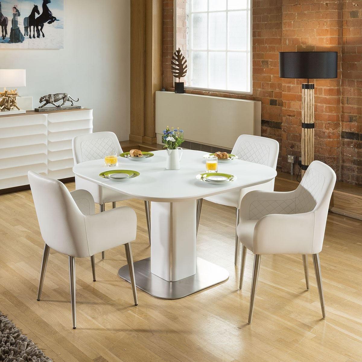 Stunning Modern Quatropi Extending Square Dining Table White Glass 1.2