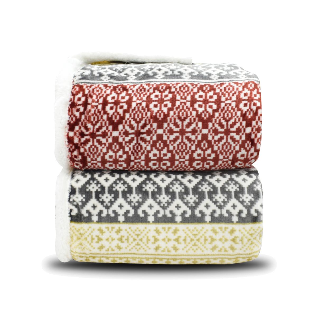 Stunning Plush Ethnic Scandi Printed Fleece Reverse Throw - Red