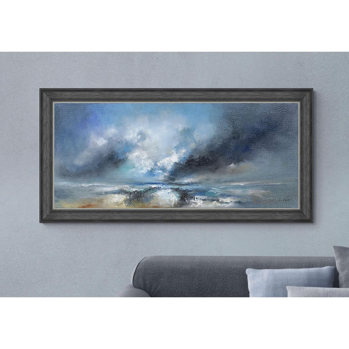 It’s easy to lose oneself in this wonderful piece of art. Large in size, this framed picture depicts tumultuous seas and clouds in a gorgeous palette of blues. Why you'll love it This large and very beautiful seascape framed picture is so atmospheric. Modern impressionistic style in every shade of blue. Reproduced from original artwork by Anna Schofield. Hand-finished with acrylic paint for a dynamic textured look. Contemporary grey frame with a silver accent. A Furniture Village online exclusive. Made in the UK. This framed picture is part of the Furniture Village home accessories collection. What you need to know Supplied with a metal hanging fitting and nylon cord. Indoor use only. Dimensions Height: 64 cm (26 in). Depth: 2.5 cm (1 in). Width: 130 cm (52 in).