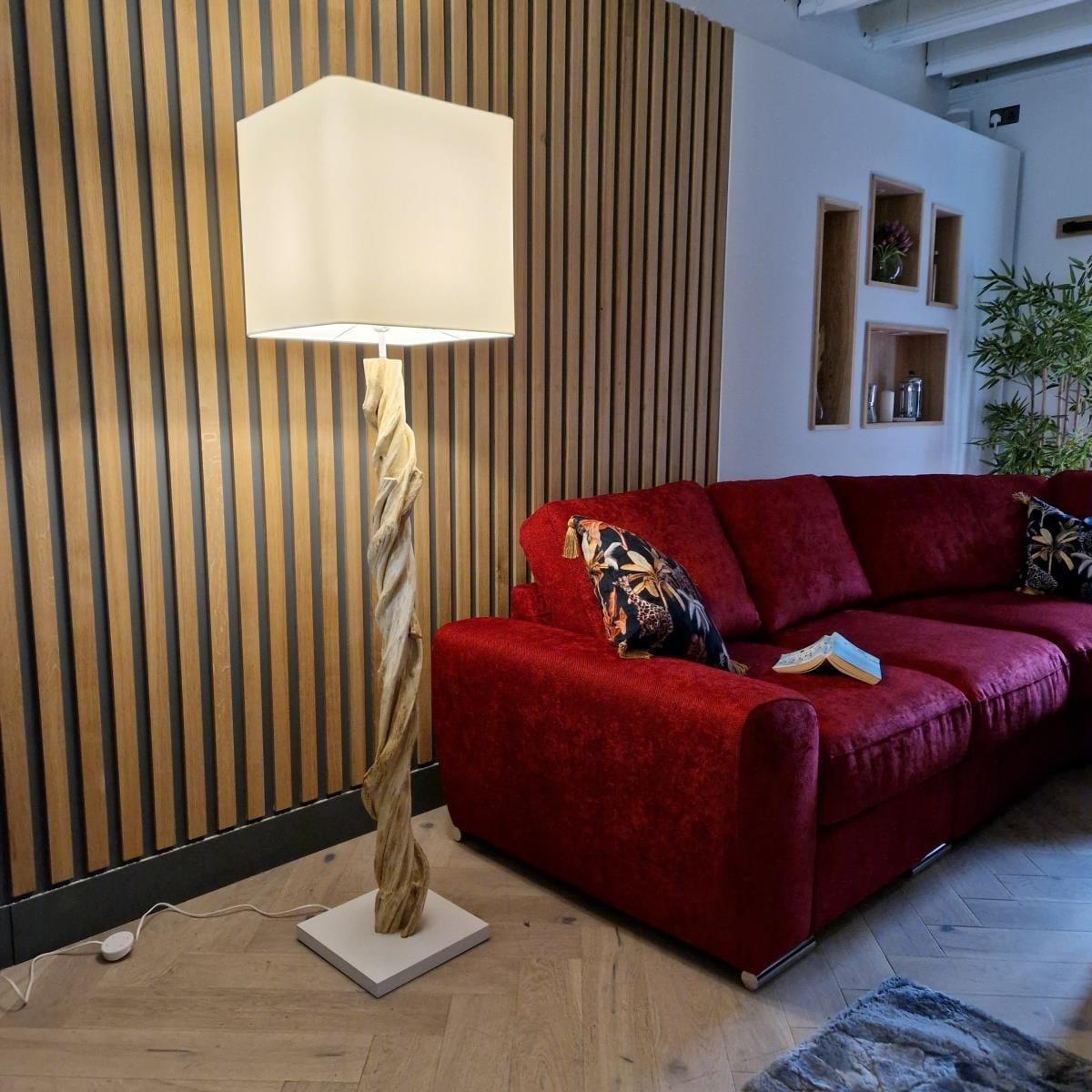 Stunning Unique Modern Driftwood floor lamp / light white shade Zanaga