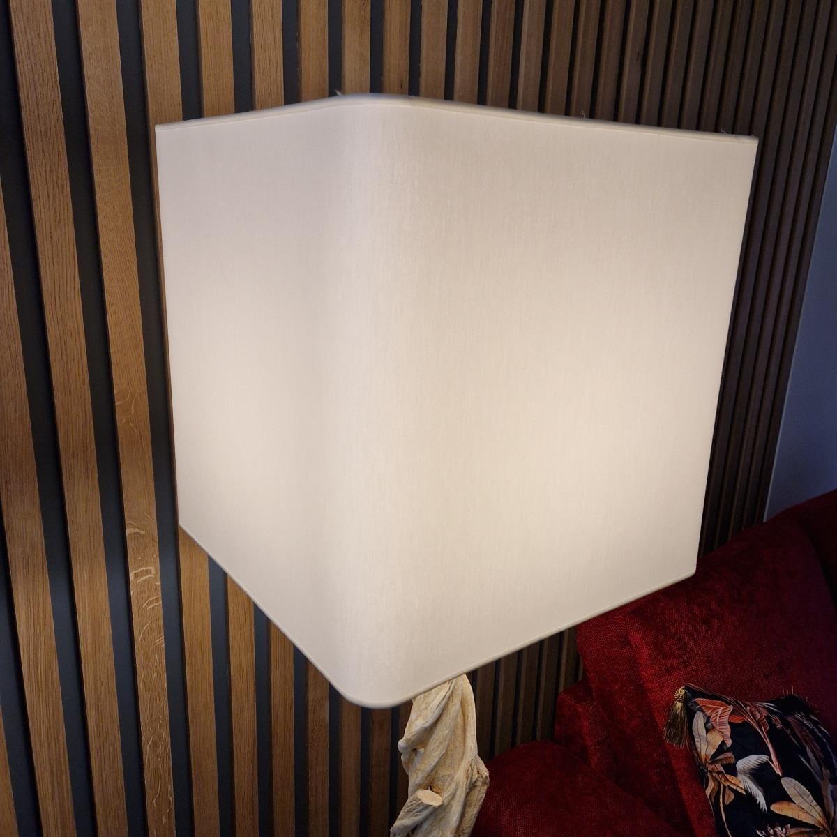 Unique Modern Driftwood Table Lamp. A Truly Stunning & Unique Driftwood Design with Elegant white cotton shade. All mounted on a white steel base. This lamp requires 1 x bulb (not supplied). Made by Europe's top lighting manufacturer, please do not confuse with cheap Asian copies. Please note this is a handmade unique driftwood product, each one will be different. W40cm D40cm H160cm Modern Design Premium Quality Furniture