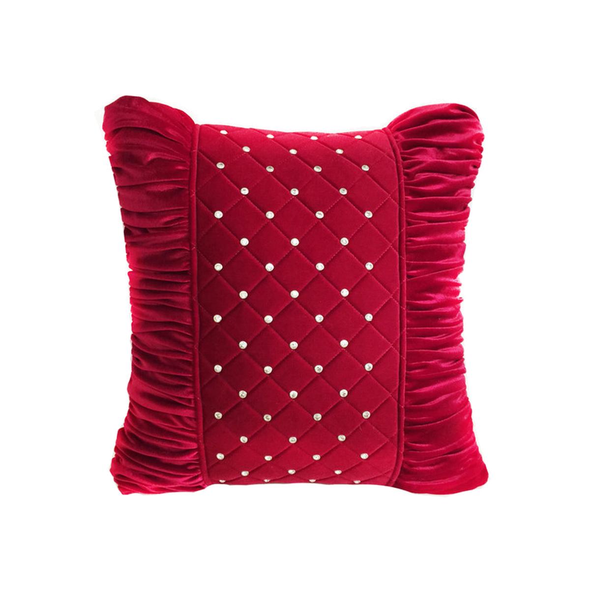 Stunning Velvet Pleat With Crusted Gem Detail Cushion Cover - Red