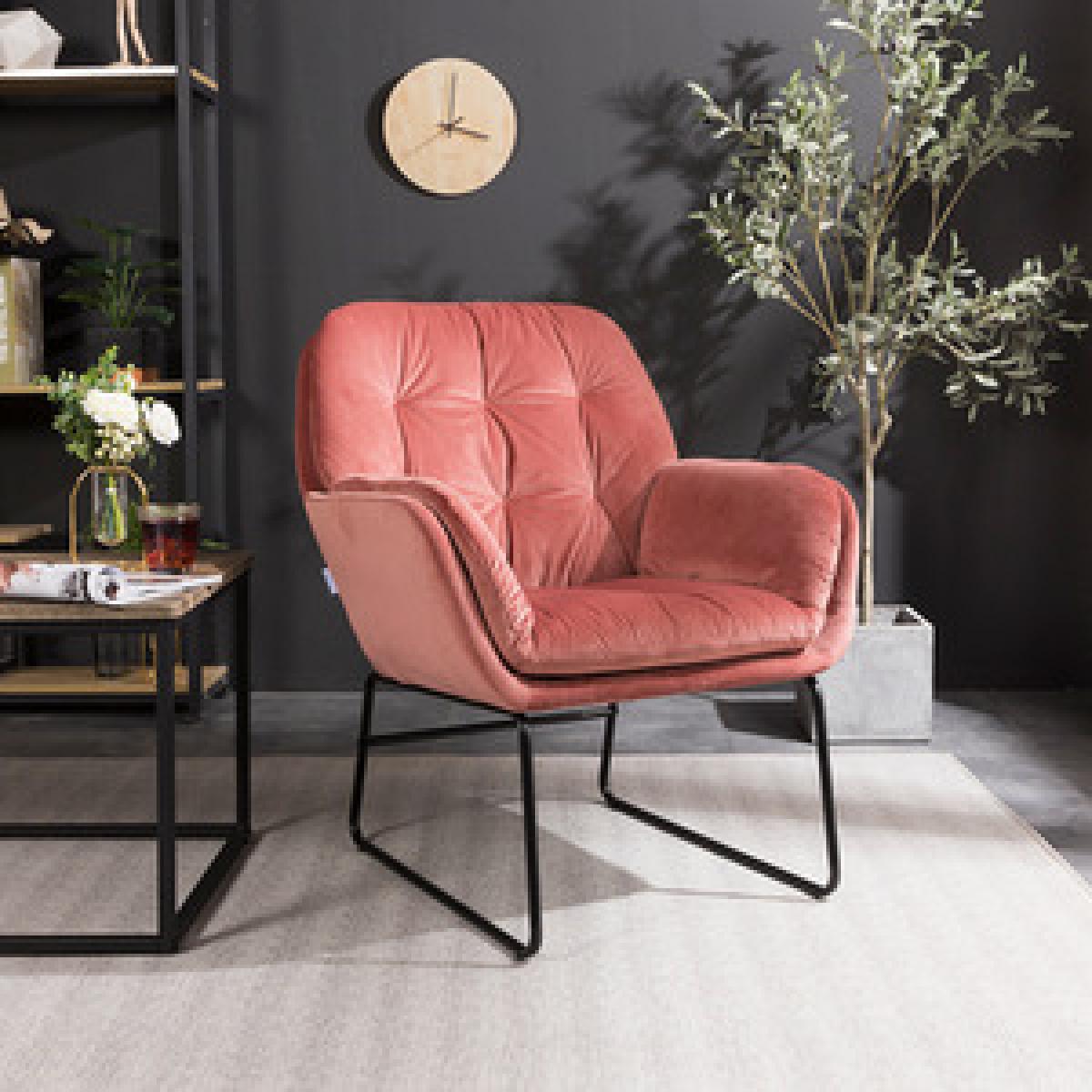 This is a minimalist stylish accent chair, light luxurious velvet fabric upholstery with soft foam filling, and black trapezoidal metal legs support. The non-slip design of the bottom of the metal bracket will not scratch the floor. Combined with modern simple style and timeless comfort, this piece will add a stylish element to any room and is your living room furniture layout. Perfect choice.