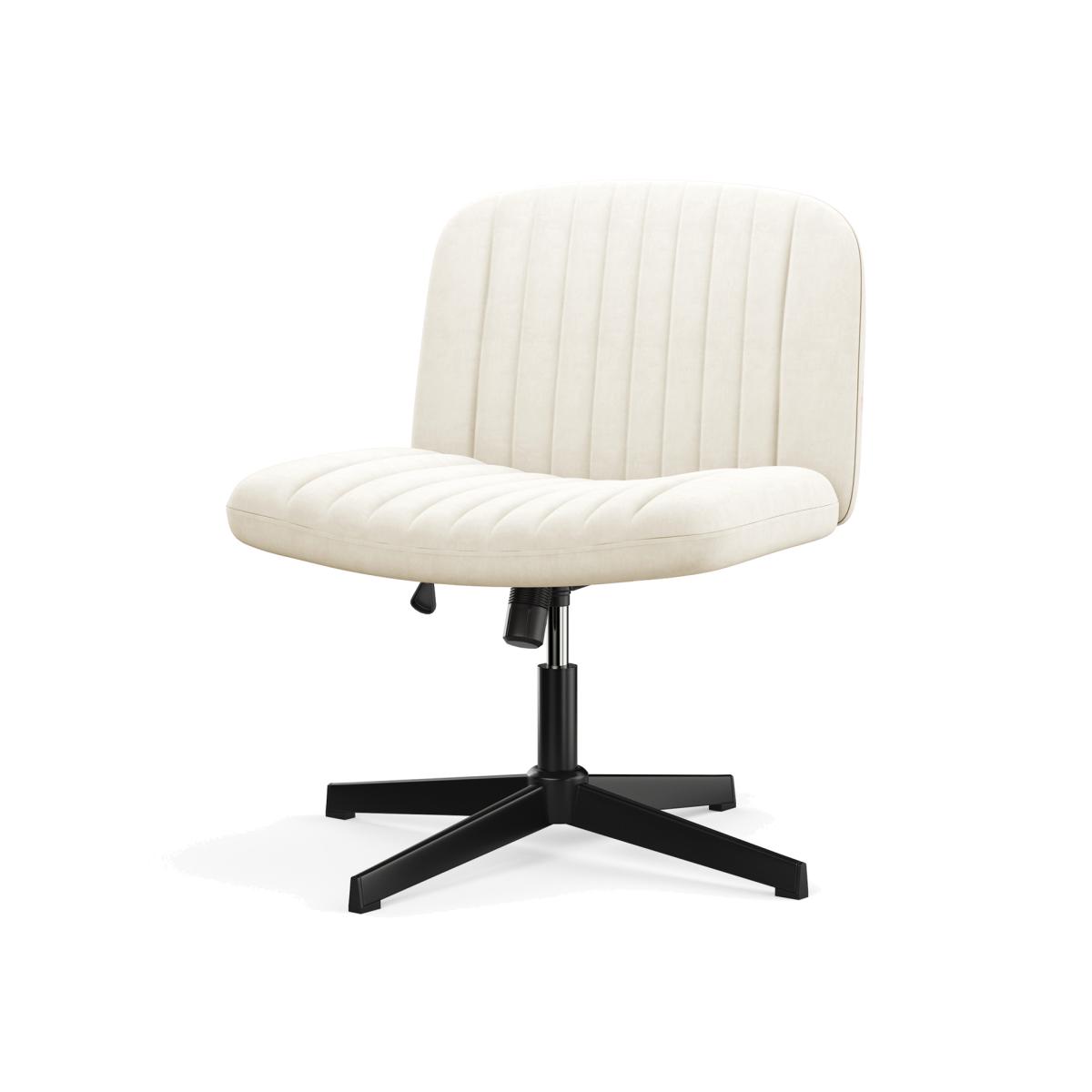 Enjoy luxurious comfort with a wide seat and backrest, perfect for sitting comfortably even with crossed legs. Covered in skin-friendly velvet fabric, the cushion and backrest provide a soft and breathable seating experience. Experience stability and support with the curved faux shell backrest and U-shaped cushion design, reducing pressure on your back and hips. The unique black lacquered cross base ensures stability while preventing scratches and slips with non-slip feet. Elevate any space with the simple and fashionable design of this armless office chair. Its versatile look blends seamlessly with any decor, making it suitable for the office, bedroom, study, living room, dorm room, or dressing table.