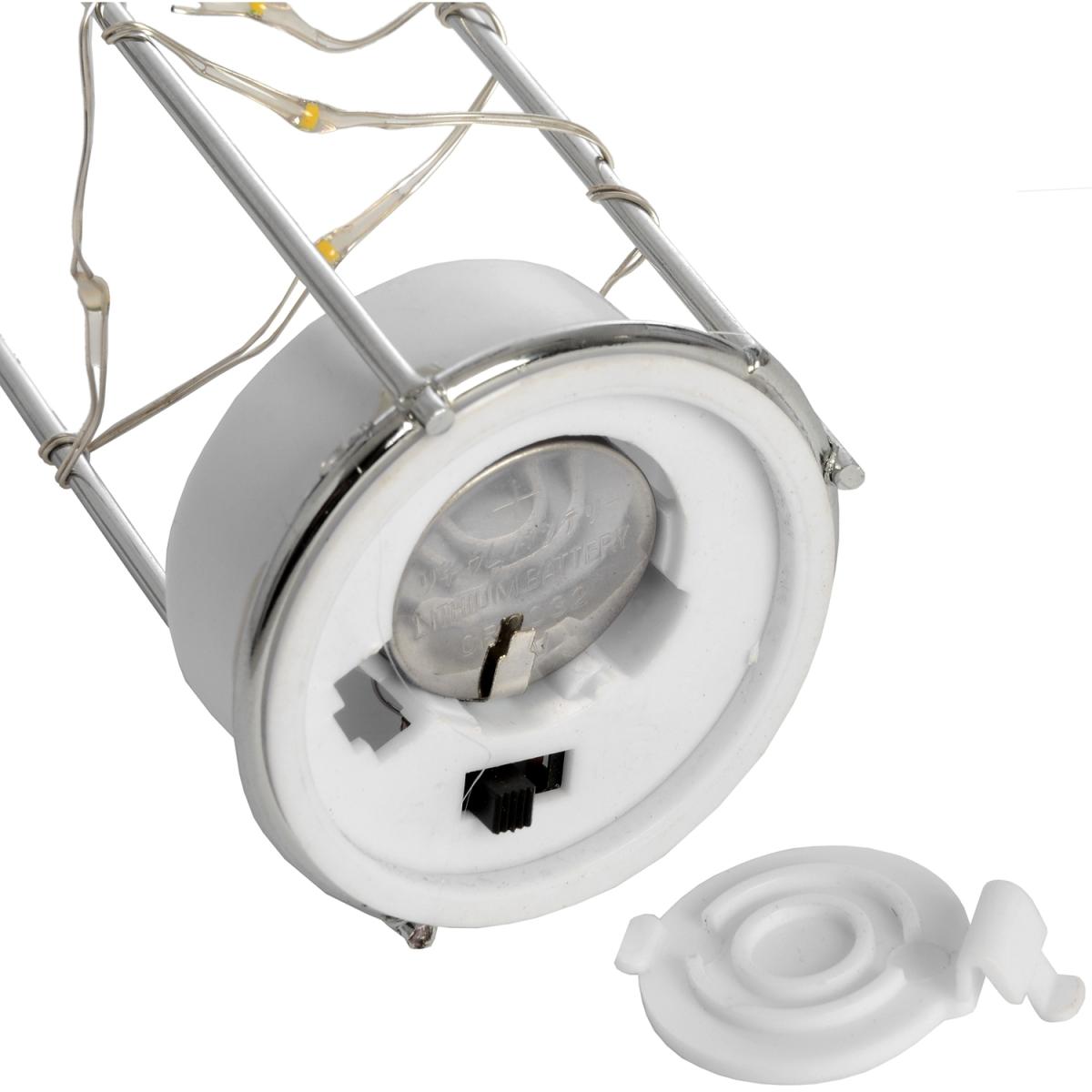 Frosted grey glass lanterns with rope detail handle and internal LEDs. These lanterns are elegant unlit and bewitching when switched on. A string of tiny LEDs coil around any easy to remove metal insert and appear as stars on the jar's exterior thanks to light diffusion from the frosted grey glass. The perfect additions to a create a cosy, atmospheric set-up inside or outdoors. Batteries not included. 1 x CR2032 needed.